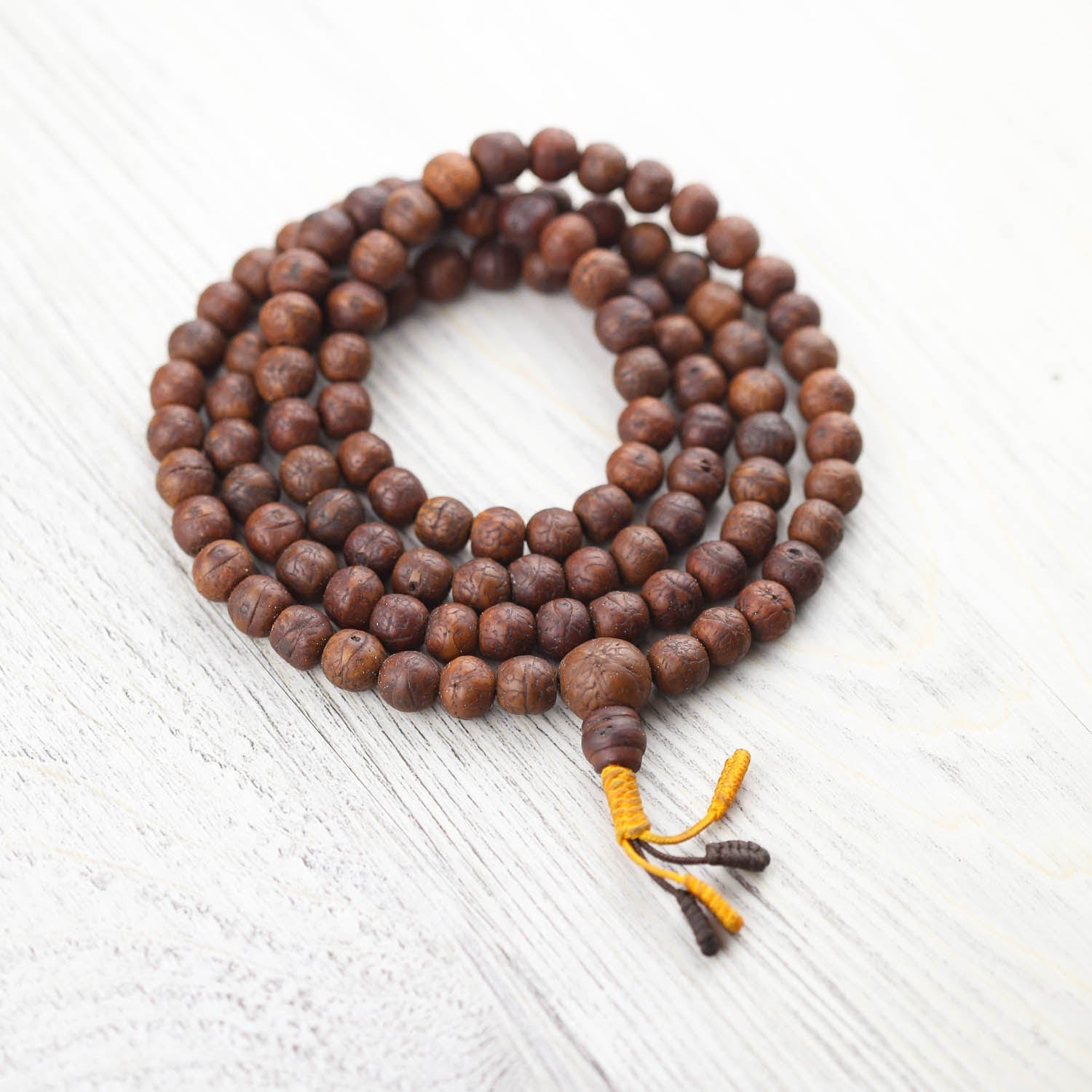 This mala comes from our DharmaShop curated collection. It was hand selected from an antique bodhi seed seller just outside of the Boudhanath temple. The bodhi seeds originate from the Kavrepalanchok District, one of the only places in Nepal so far to produce bodhi seeds! This seller and her family have been involved in the bodhi seed trade for generations. Kavrepalanchok is also the hometown of the head of our DharmaShop Nepal team!