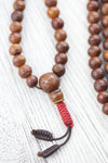 • Made of 108 small, well used and very dark bodhi beads.  Each bead is rich in detail with a beautiful sheen as well as its own shape and texture.  The mala has been restrung in recent years on brown cord with a red knot.