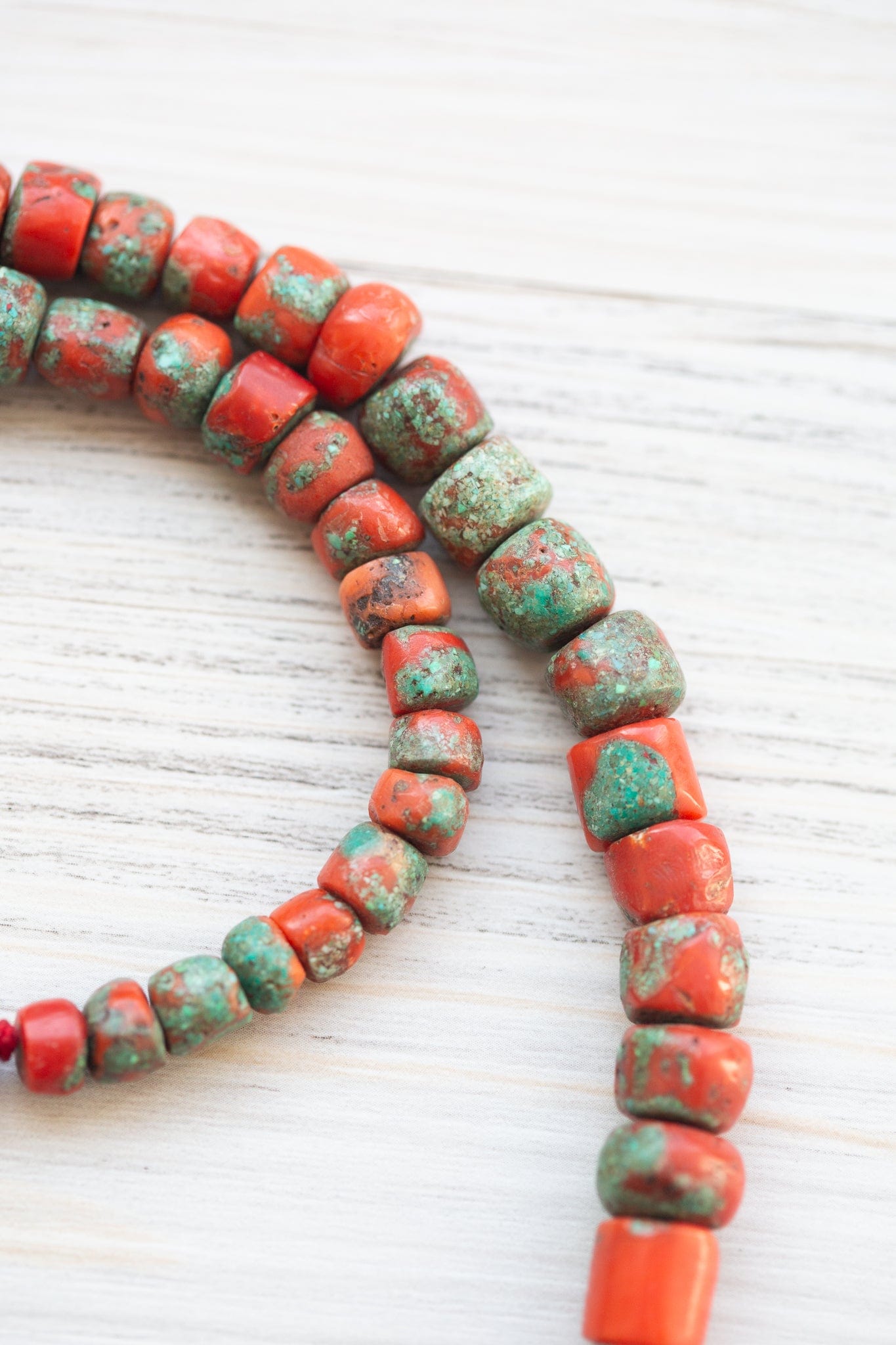 This is an heirloom belonging to the traditions and regions of Tibet, Nepal, and the Himalayas. The Himalayas have a long history of trading Coral with the Indian Ocean region. This Coral was then used to make decorative items and jewelry which was then passed down through generations.
