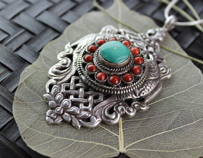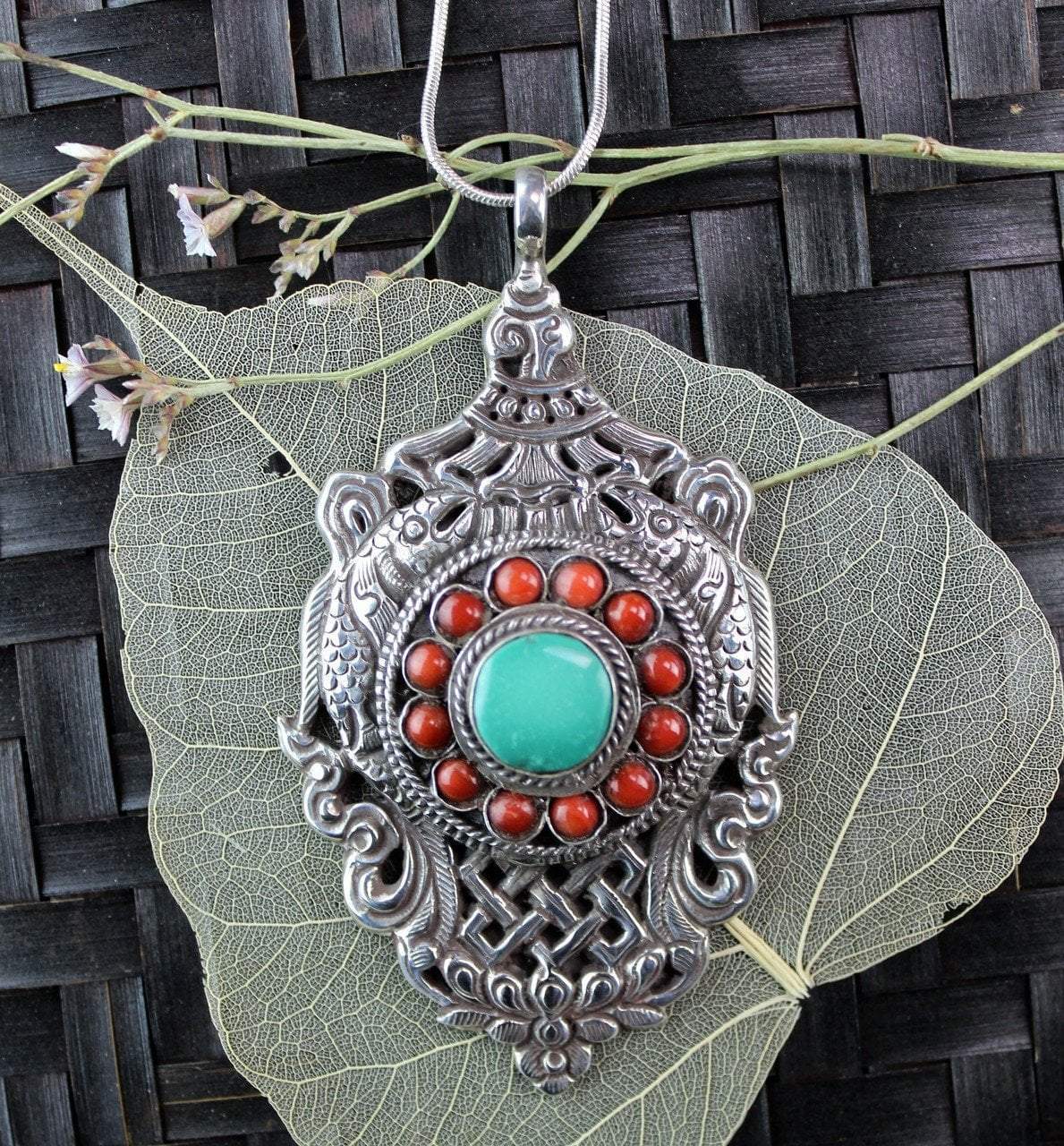 Stunning statement piece! Sterling silver with coral and turquoise.