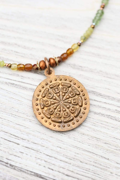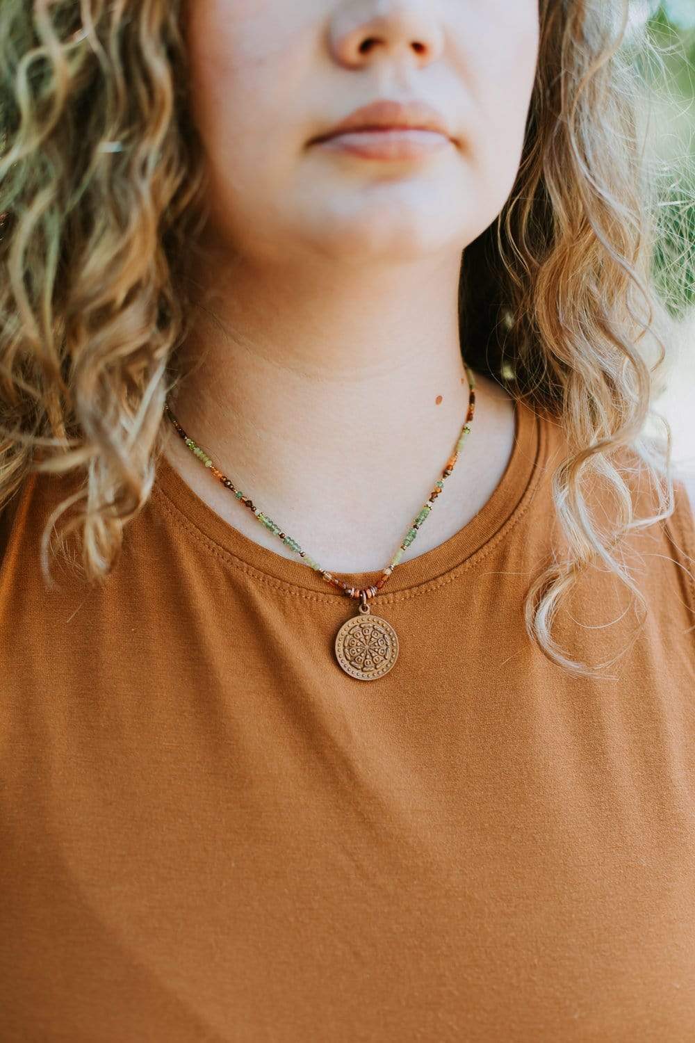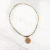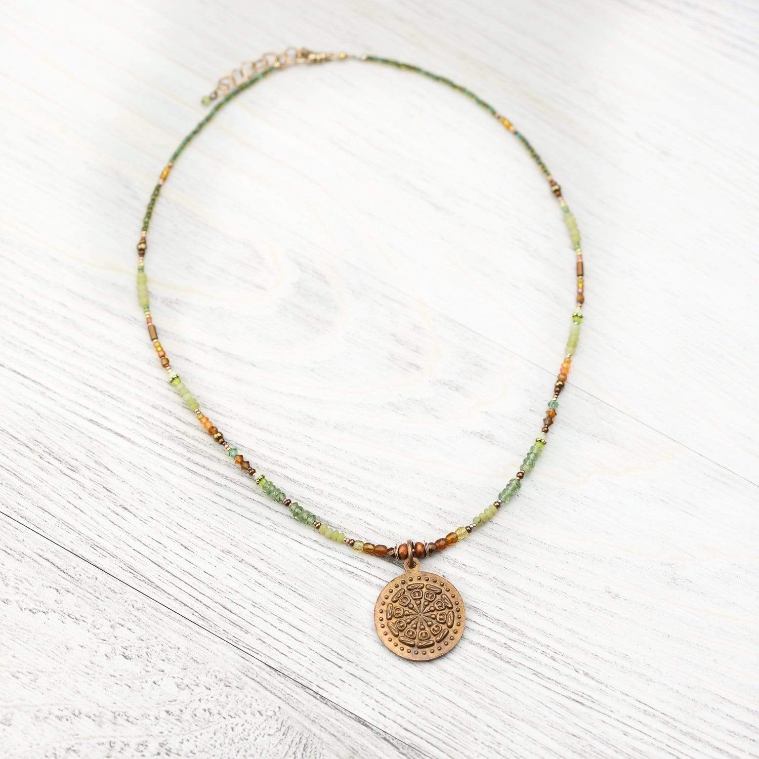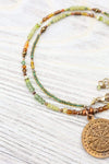 Necklace measures approximately 16 inches long with a 1.25 inch extension. Pendant is about 1 inch long. Beads are 2-4mm. As each necklace is handmade, gemstone colors may vary slightly.