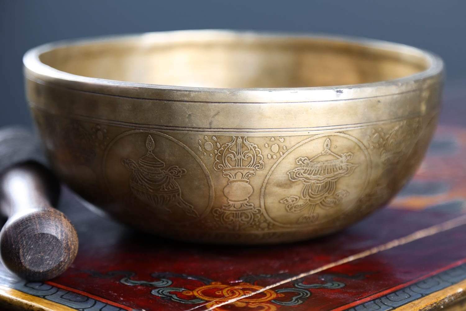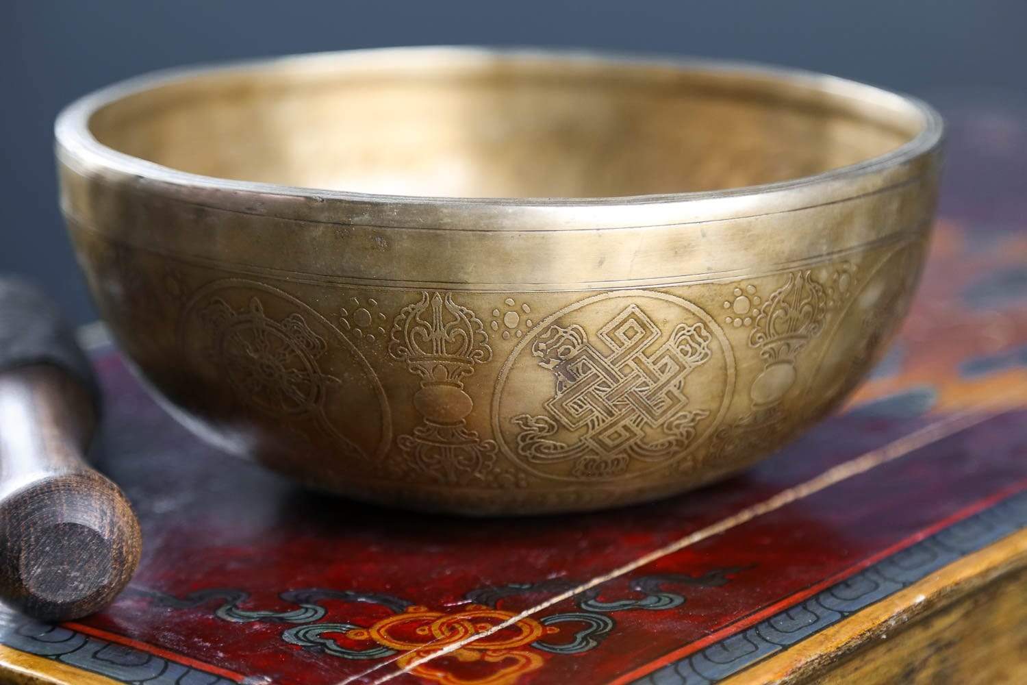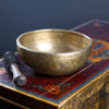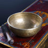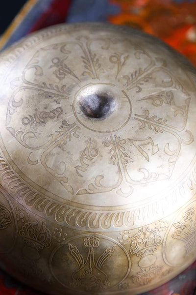 Bowl rings at a A# note when struck with a woolen mallet. This note resonates with the Third Eye Chakra. When this chakra is balanced, we are able to better connect to our intuition and imagination, visualize, concentrate, have insight, enlightenment and a finely tuned awareness.