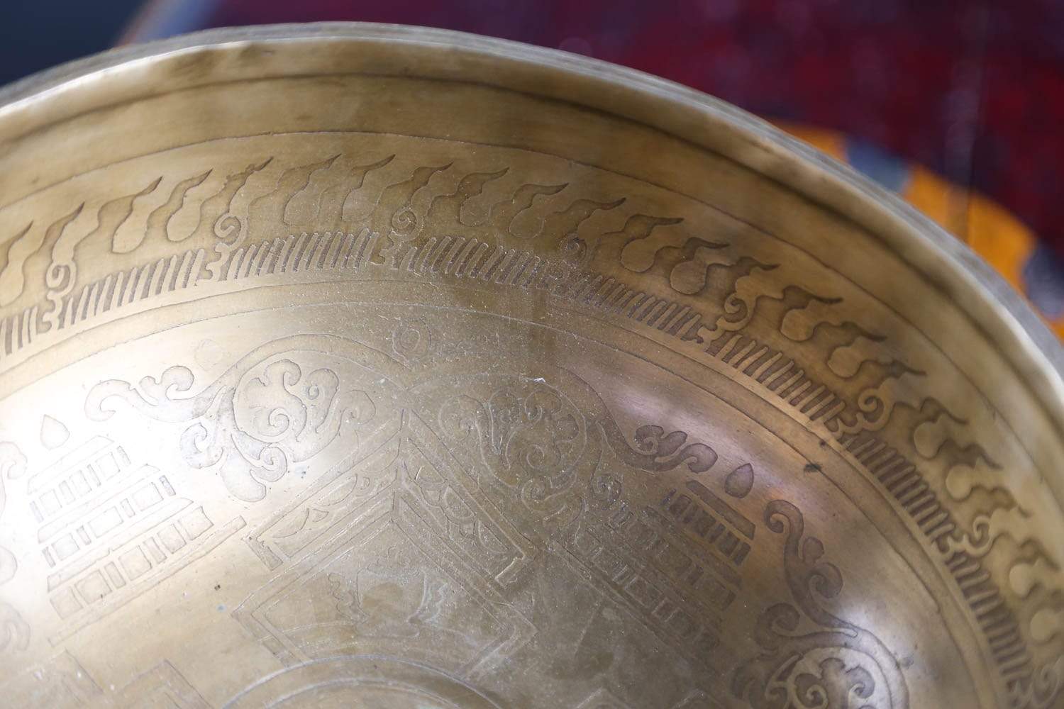 On the bottom base of the bowl you will see a Tibetan mandala design, a geometrical design often used for meditation. Mandalas are rich with symbolism and sacred meaning. In fact, the etymology of the word "mandala" suggests not just a circle but a "container of essence."