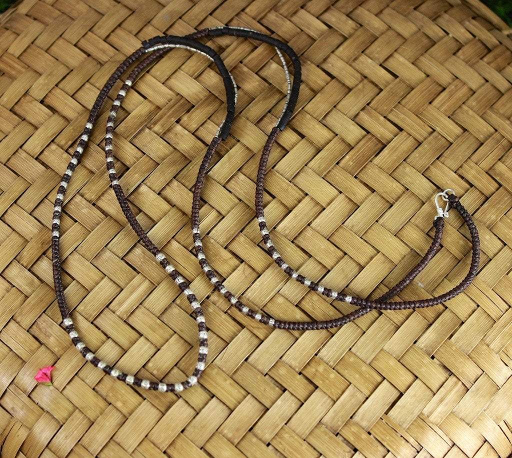 Our new handmade wrap bracelet can be used as a necklace as well. 1 30 inch strand of sterling silver, coconut shell beads and hill tribe silver spacer with a hook closure. You can add a charm or pendant, and wear it as a necklace or just wrap it 4-5 times around your wrist. My new favorite!