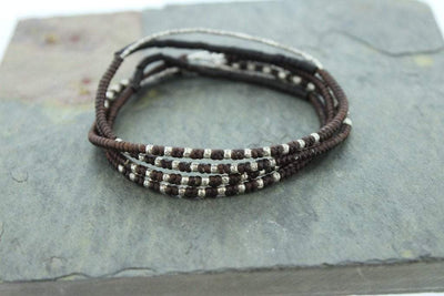 Brown Cotton and Sterling Coconut Wrap Bracelet