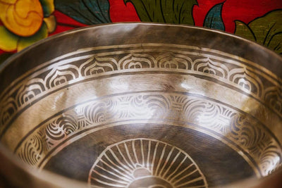 Bowl rings at about a D note when struck with a woolen mallet. This note resonates with the Sacral Chakra. This energy is the center for creating relationships of all kinds. It is where we develop an inward sense of self and an outward awareness of others. Because each bowl is handmade, the note may vary slightly from bowl to bowl.