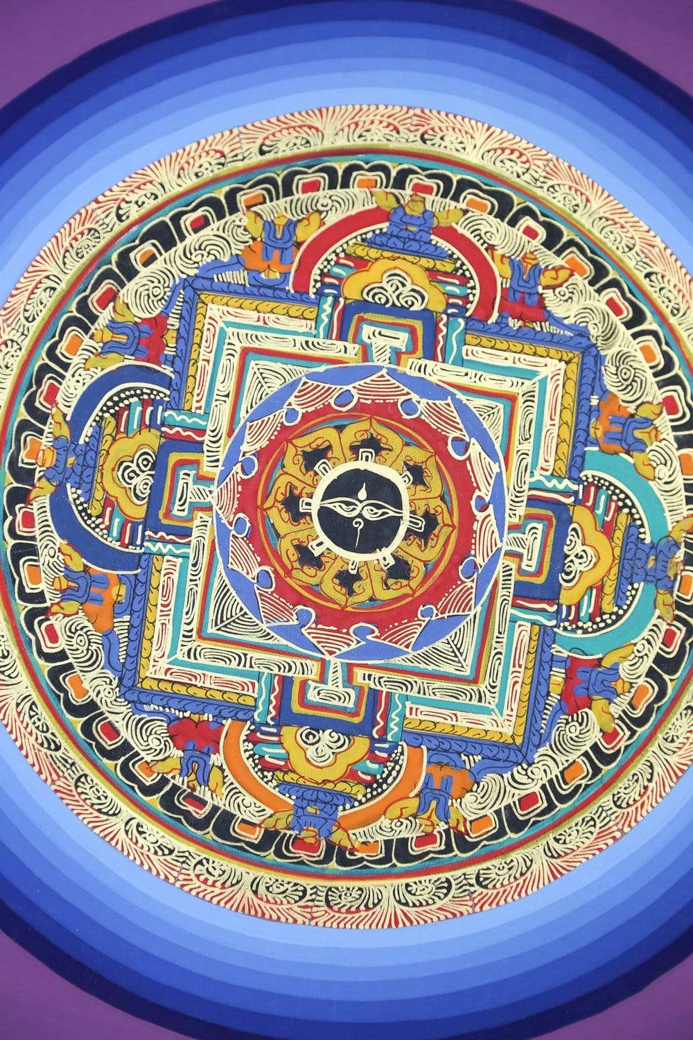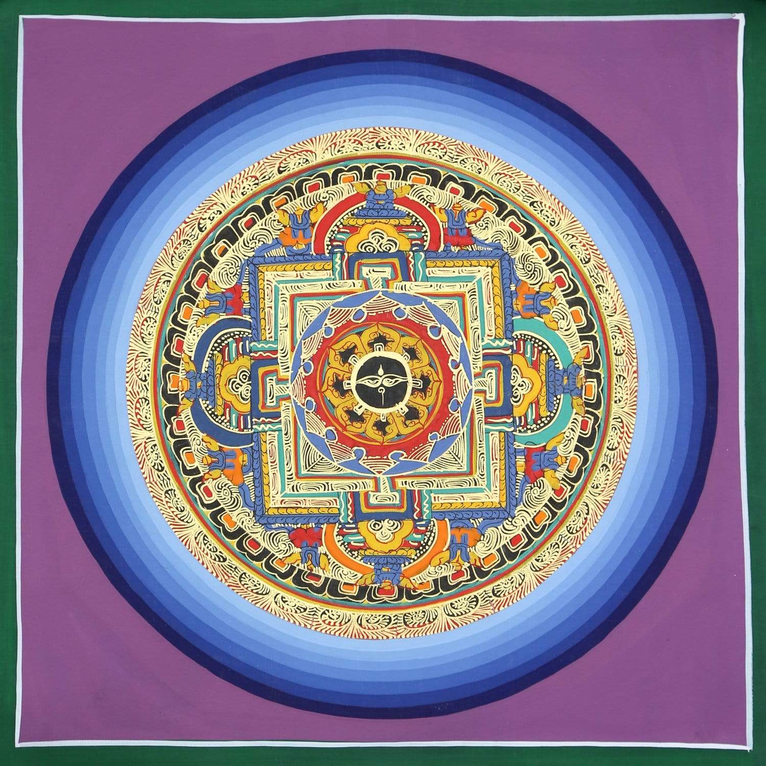 Each detail is painted by hand on cotton canvas using natural mineral and vegetable pigments with 24K gold accents. The intricate brushstrokes and extraordinary detail make these thangkas genuine works of art. It comes unframed and ready for Western style framing of your choosing.
