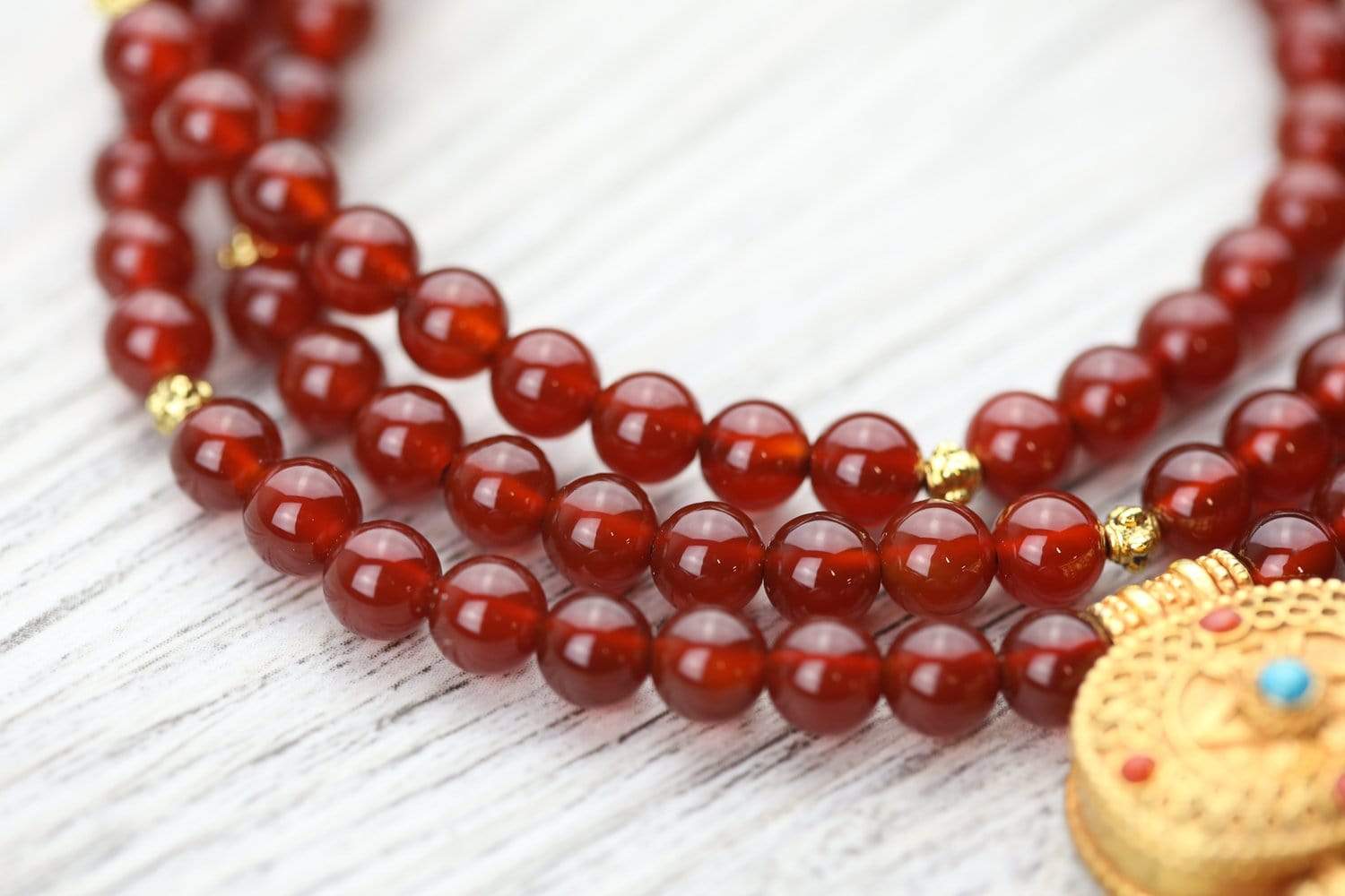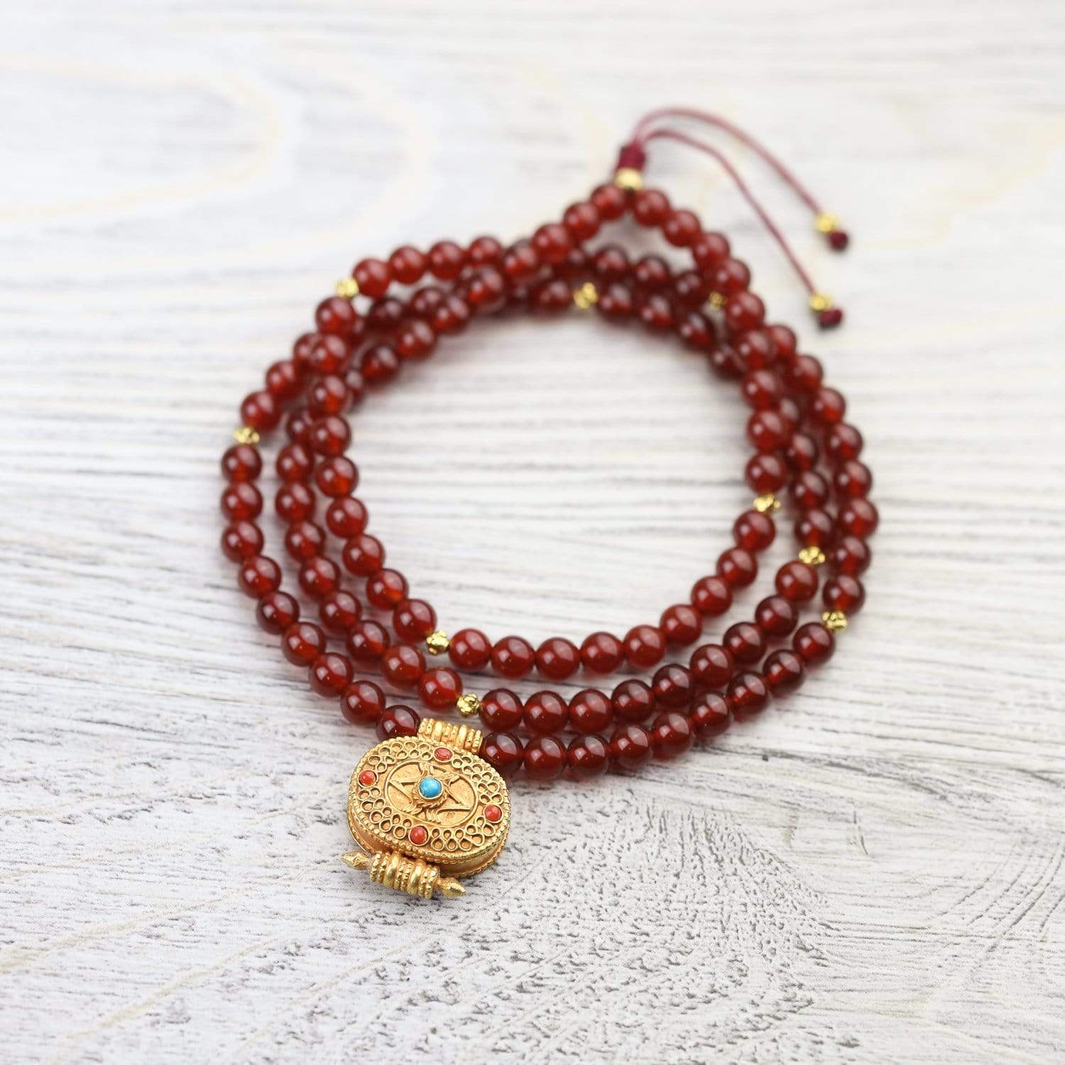 Mala measures approximately 26 inches around. Beads are 6mm. Gau measures about 1 inch tall.