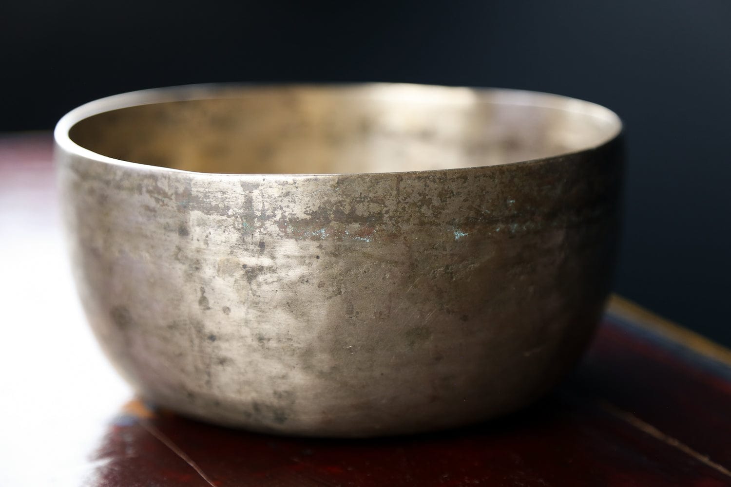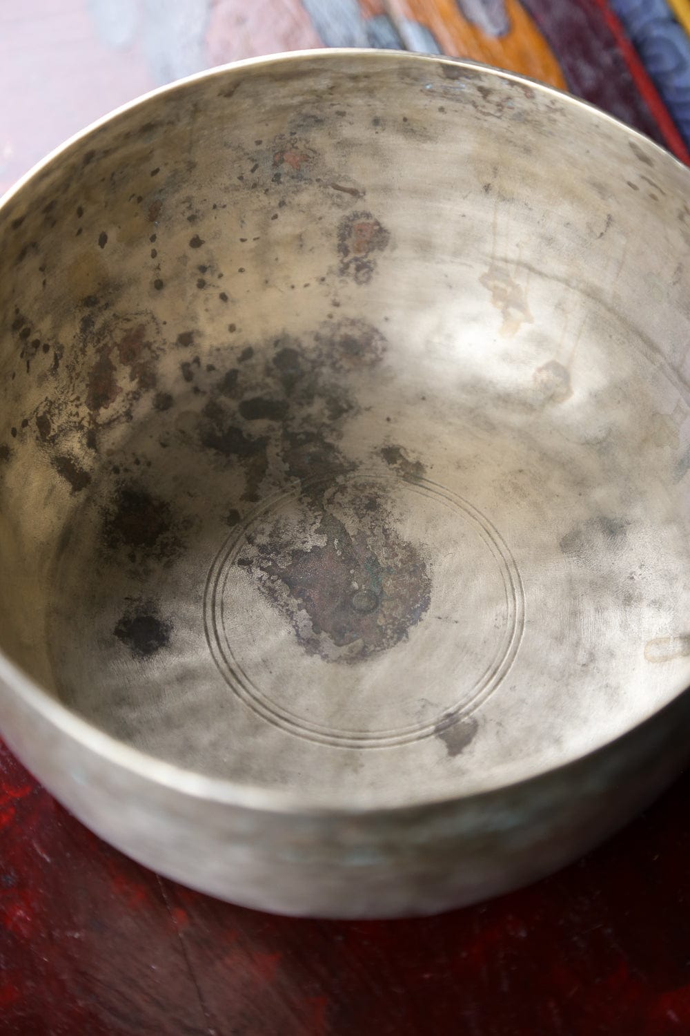 Each time we're able to get a small collection of these bowls is exciting as they are exceptional. Antique Tibetan singing bowls like this one are highly sought after for their remarkable quality sound, rich tones, and unique physical characteristics. Every handmade mark tells a story of the bowls history!