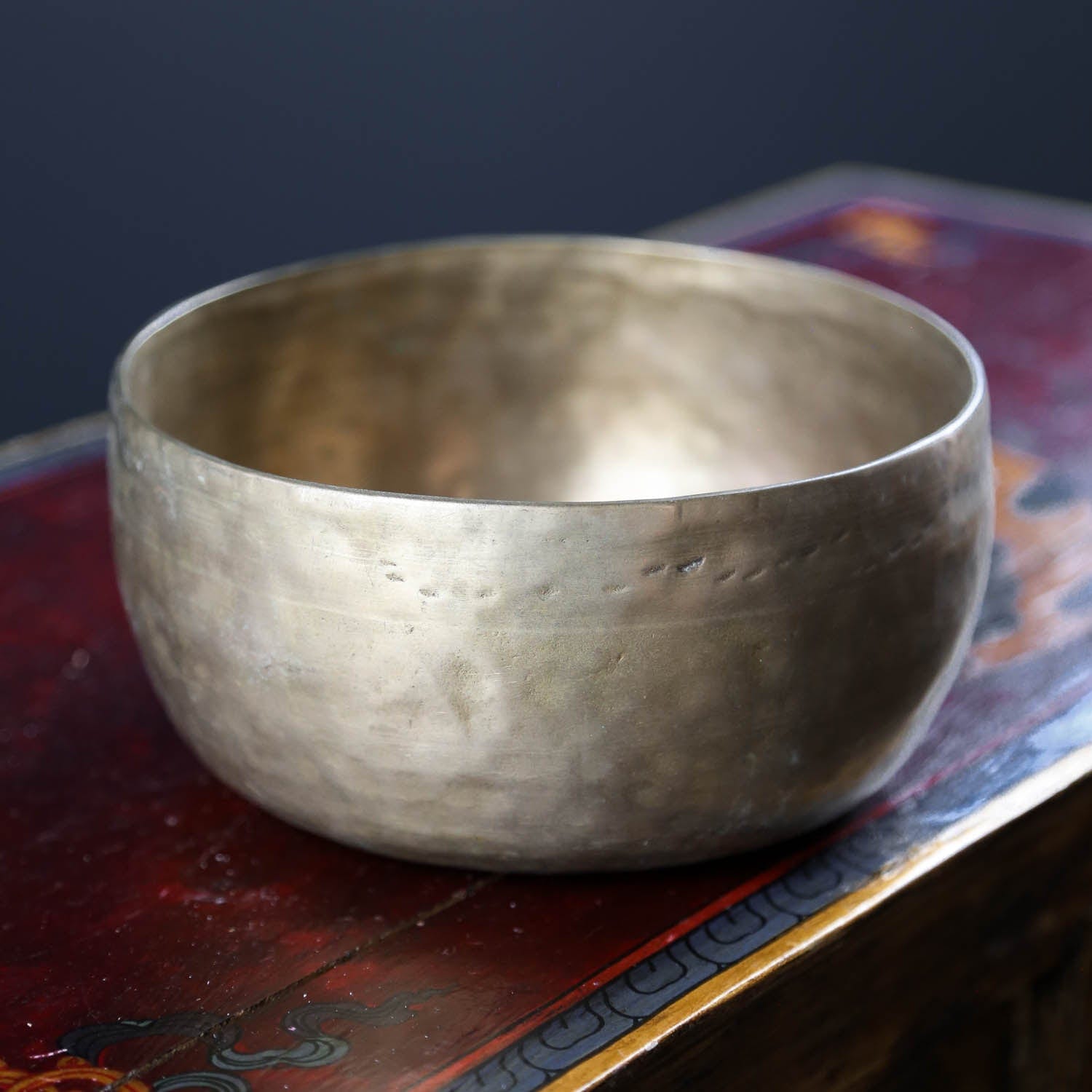 Each time we're able to get a small collection of these bowls is exciting as they are exceptional. Antique Tibetan singing bowls like this one are highly sought after for their remarkable quality sound, rich tones, and unique physical characteristics. Every handmade mark tells a story of the bowls history!