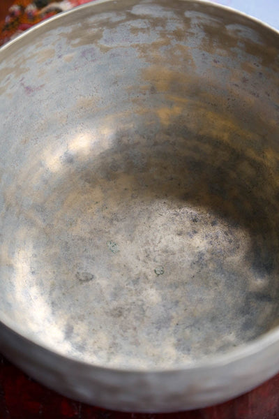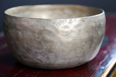 Each time we're able to get a small collection of these bowls is exciting as they are exceptional. Antique Tibetan singing bowls like this one are highly sought after for their remarkable quality sound, rich tones, and unique physical characteristics. Every handmade mark tells a story of the bowls history!