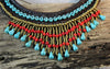 Measures approximately 9 inches in total length and 6 inches at widest point. Turquoise beads at the bottom of the piece measure about 1/2 cm in height.