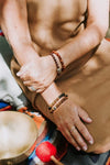 Rudraksha beads are known for their healing properties and protective powers. By meditating with a rudraksha mala, it is believed to increase the ability to concentrate, giving clarity and peace of mind. The beads are natural and sustainably harvested in Nepal.
