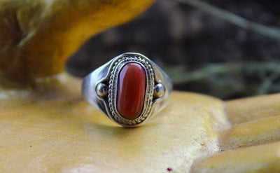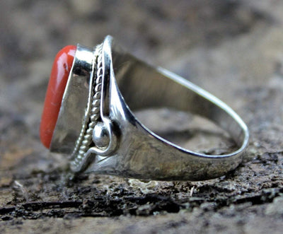 Coral stone shape will vary slightly. Sterling silver setting. Made in Nepal.