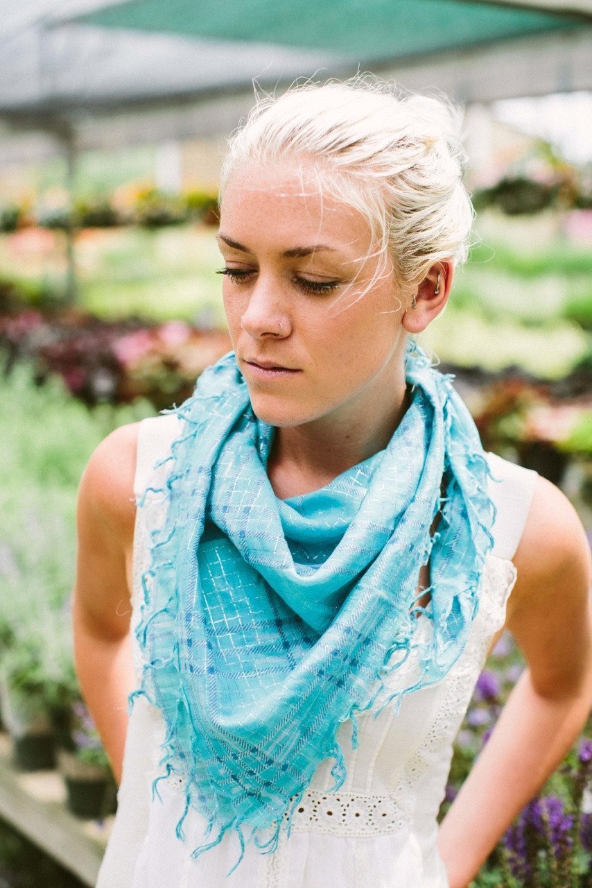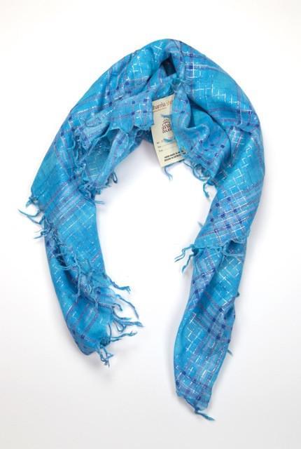 Cotton Square Tassel Scarf in Sparkle Blue