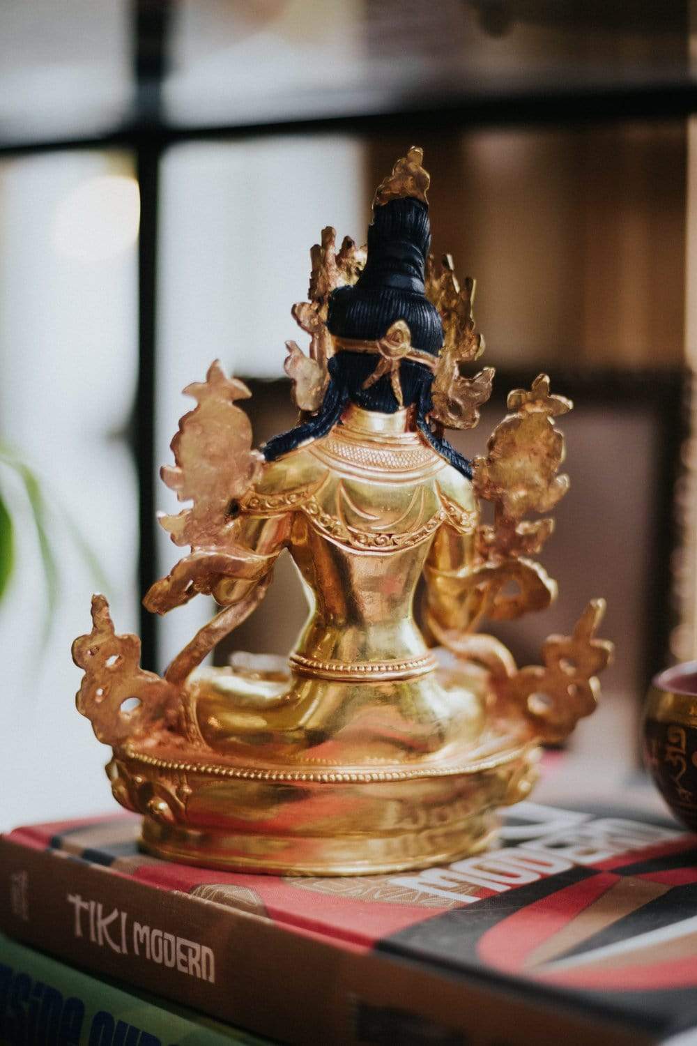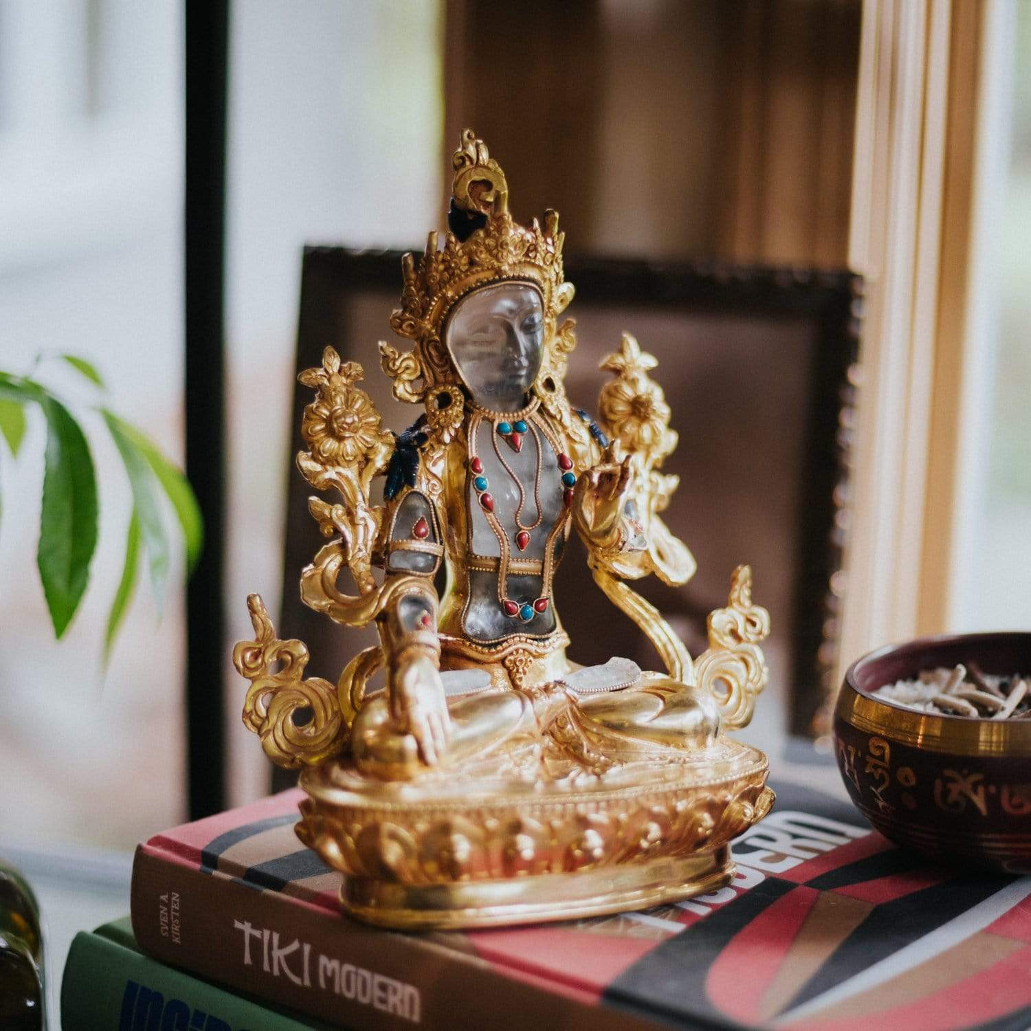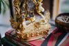 • Handmade in Nepal by a 4th and 5th generation crafting family, this statue is made of hand carved quartz crystal that is wrapped in bronze and then gold-plated.