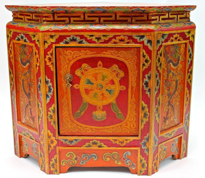 This year we brought a container of Tibetan furniture handmade by Newar artists in Kathmandu Nepal. We had a number of special orders from local designers, and we brought a few pieces for the website as well.