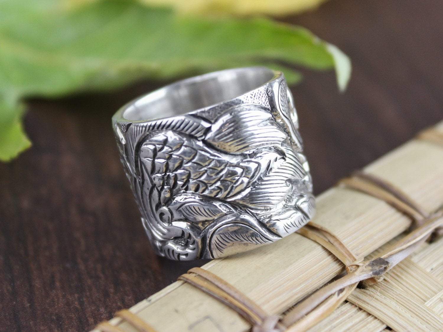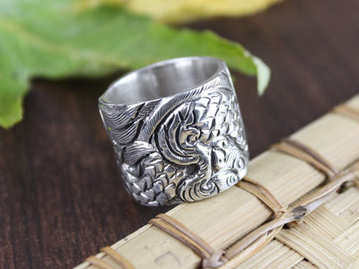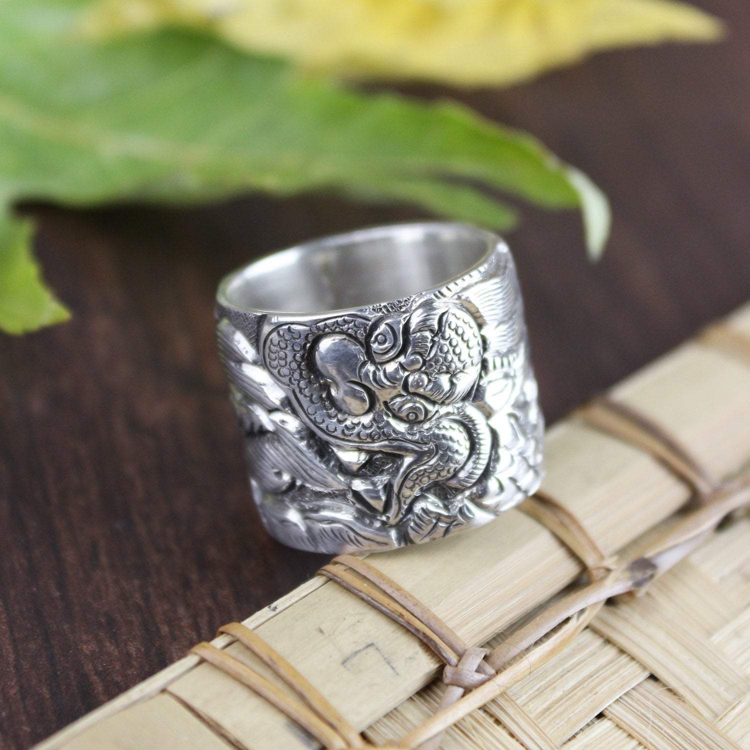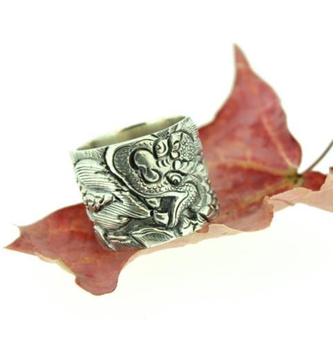 Sold sterling silver cuff ring from Nepal. It is well crafted with beautiful details including a carved dragon design for power and protection. Tibetan dragons are protectors of Buddhism whose thunderous voices awaken us from delusion.