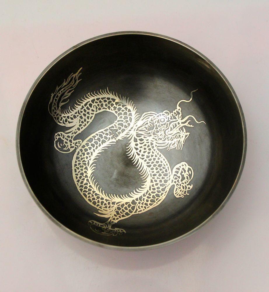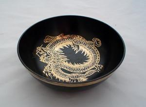 This beautifully cast bowl is made in Nepal. Features a black finish and a stunning hand painted gold dragon design within the interior of the bowl. Tibetan dragons are protectors of Buddhism whose thunderous voices awaken us from delusion.