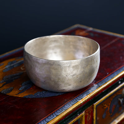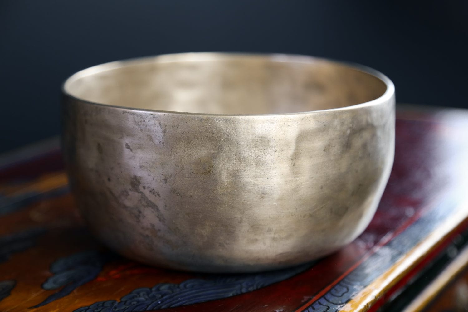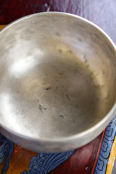 Each time we're able to get a small collection of these bowls is exciting as they are exceptional. Antique Tibetan singing bowls like this one are highly sought after for their remarkable quality sound, rich tones, and unique physical characteristics. Every handmade mark tells a story of the bowls history!