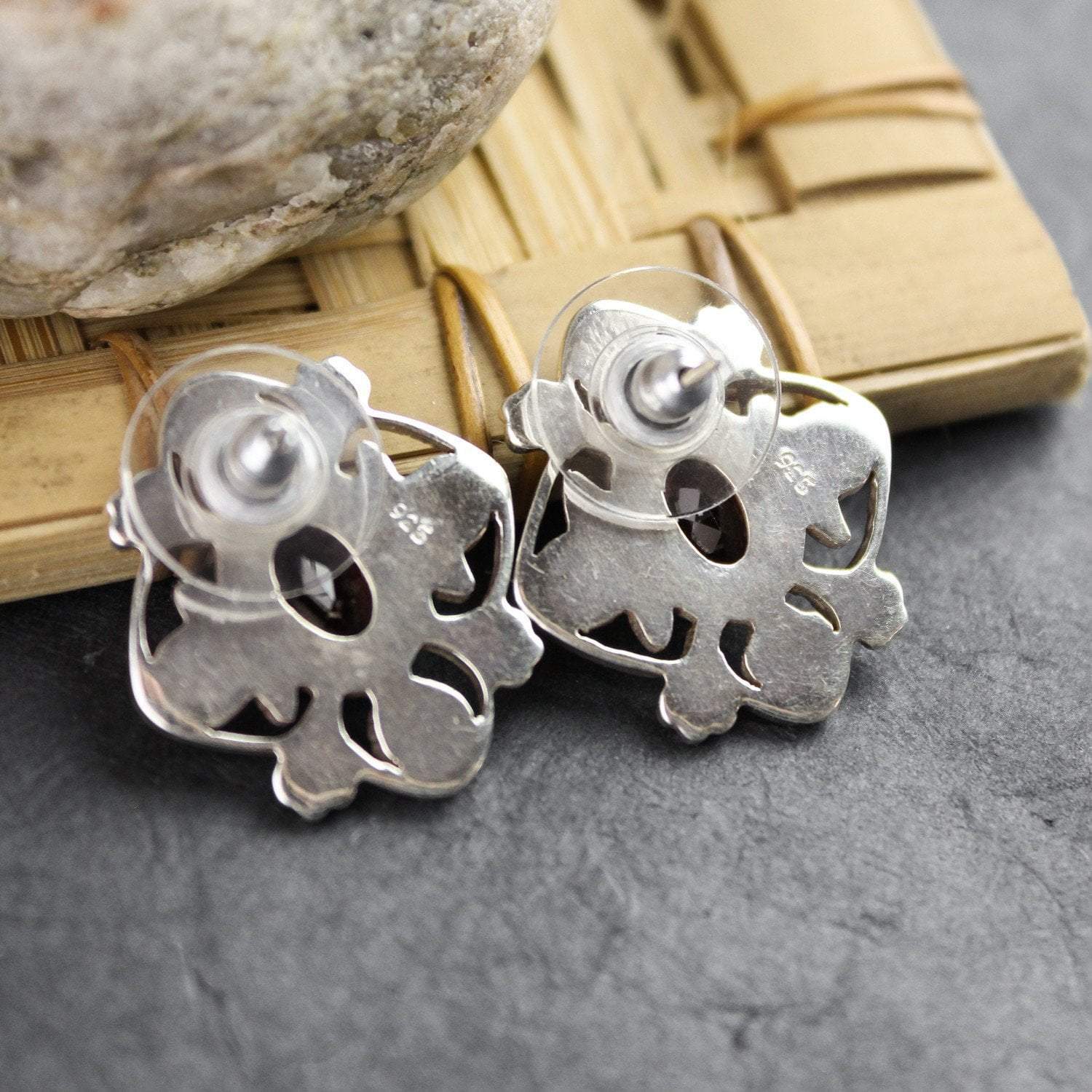 Earrings measure approximately 7/8 inch tall and 3/4 inch wide.