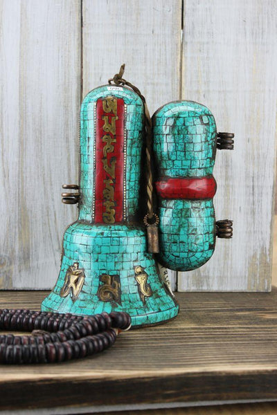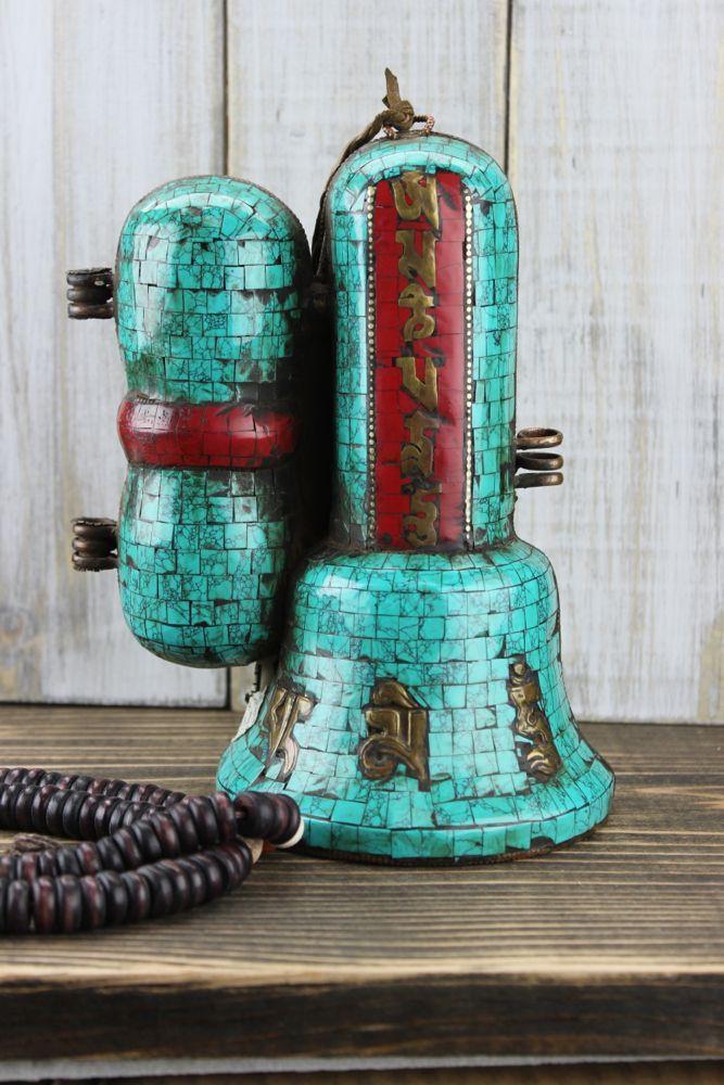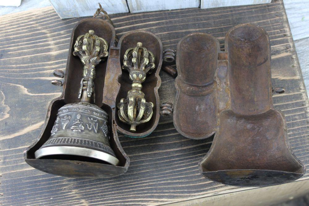 There is only one man in Nepal that makes these amazing bell and dorjes with cases. The bell is a 7 metal bell with a clear tone and exquisite carving. The dorje is 8 pronged and detailed. The case is handmade and simply amazing. We only received 1 of these this year.