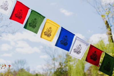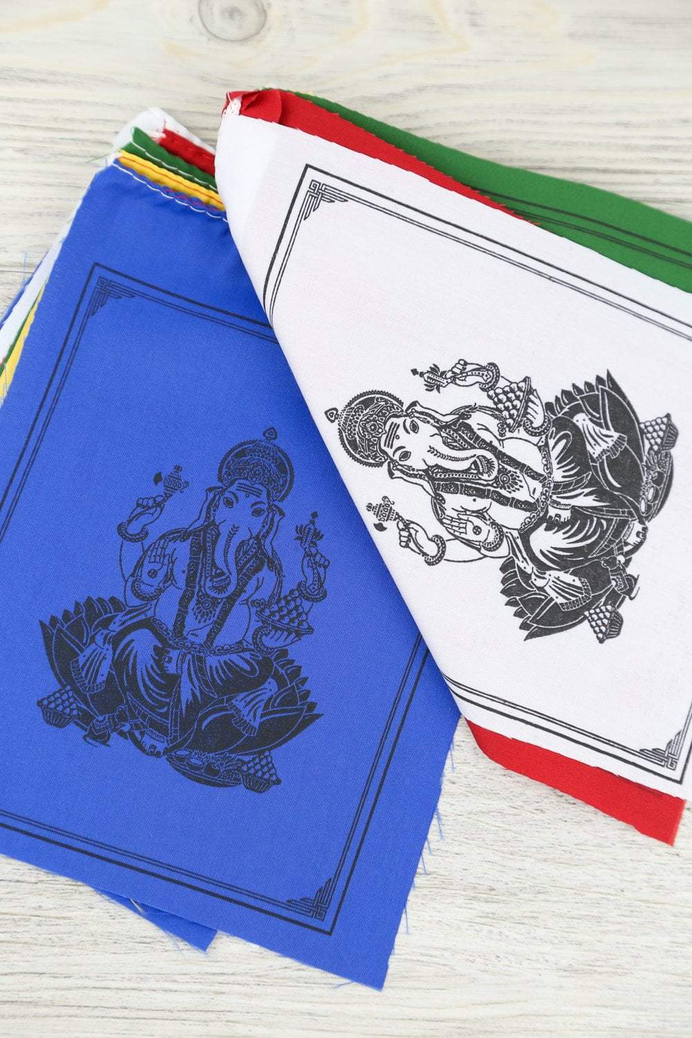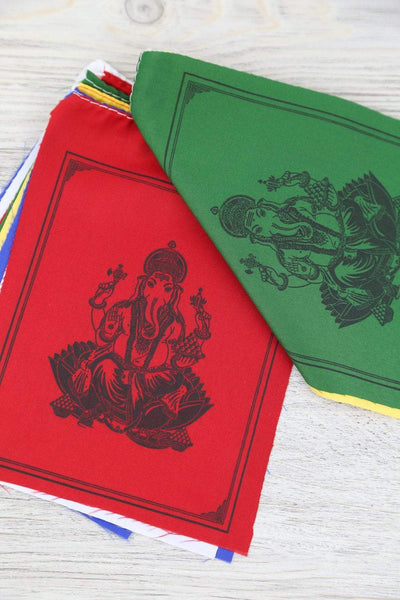 Ganesh is known as the remover of obstacles, the patron of arts and sciences, and the deity of intellect and wisdom. Because he is honored as the god of beginnings, hanging these flags will assure for a peaceful environment for undertaking new endeavors without obstacles.