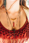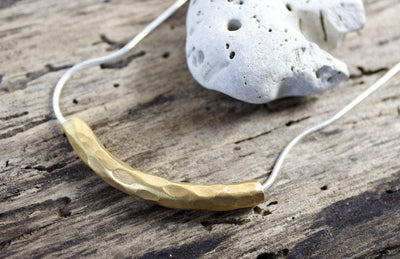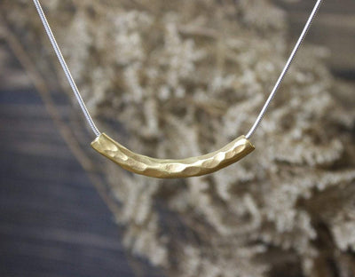 Sterling silver snake chain featuring a matte gold vermeil tube pendant. The pendant measures approximately 1 3/4 inches long. The snake chain measures 18 inches.