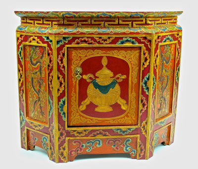 This year we brought a container of Tibetan furniture handmade by Newar artists in Kathmandu Nepal. We had a number of special orders from local designers, and we brought a few pieces for the website as well.
