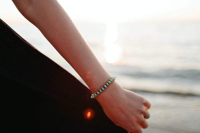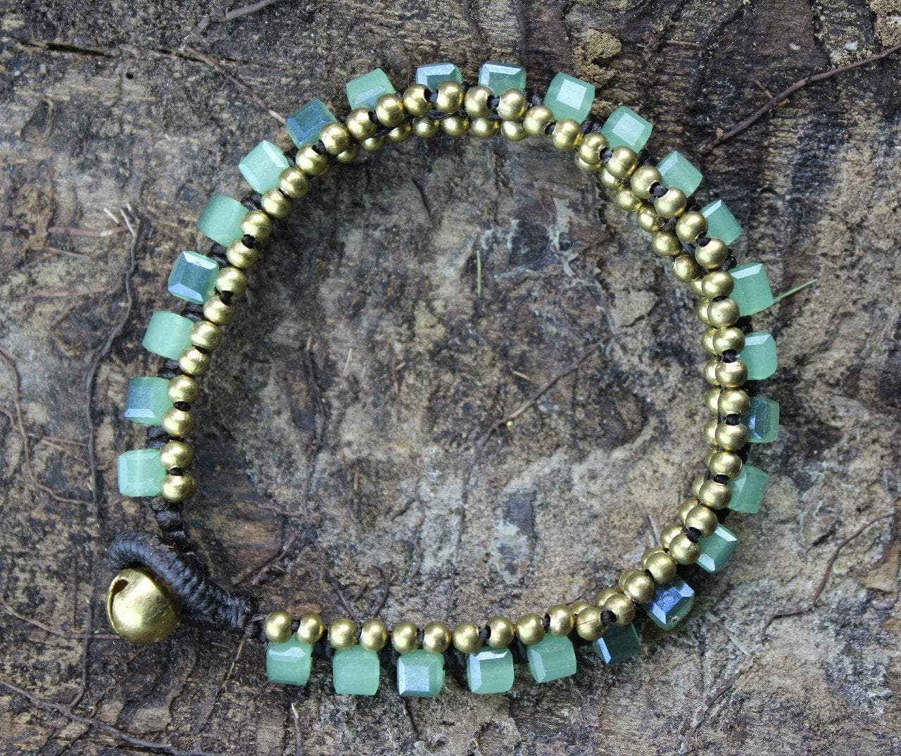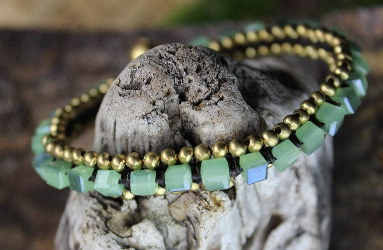 Handmade in India by Tibetan artisans. These square cut Czech glass beads are hand woven with brass beads to produce a fashionable and earthy look.