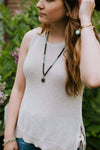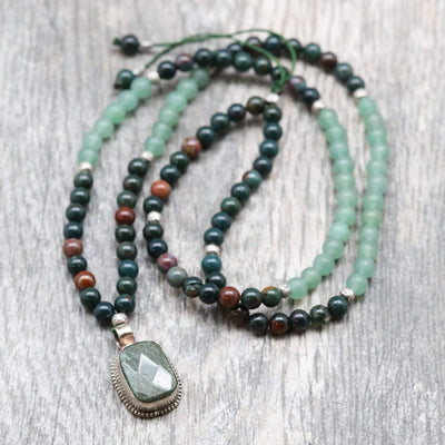 Mala measures approximately 26 inches around with an adjustable sliding knot closure. Beads are about 6mm. Pendant measures about 1 inch tall from bale and 3/4 inch wide.