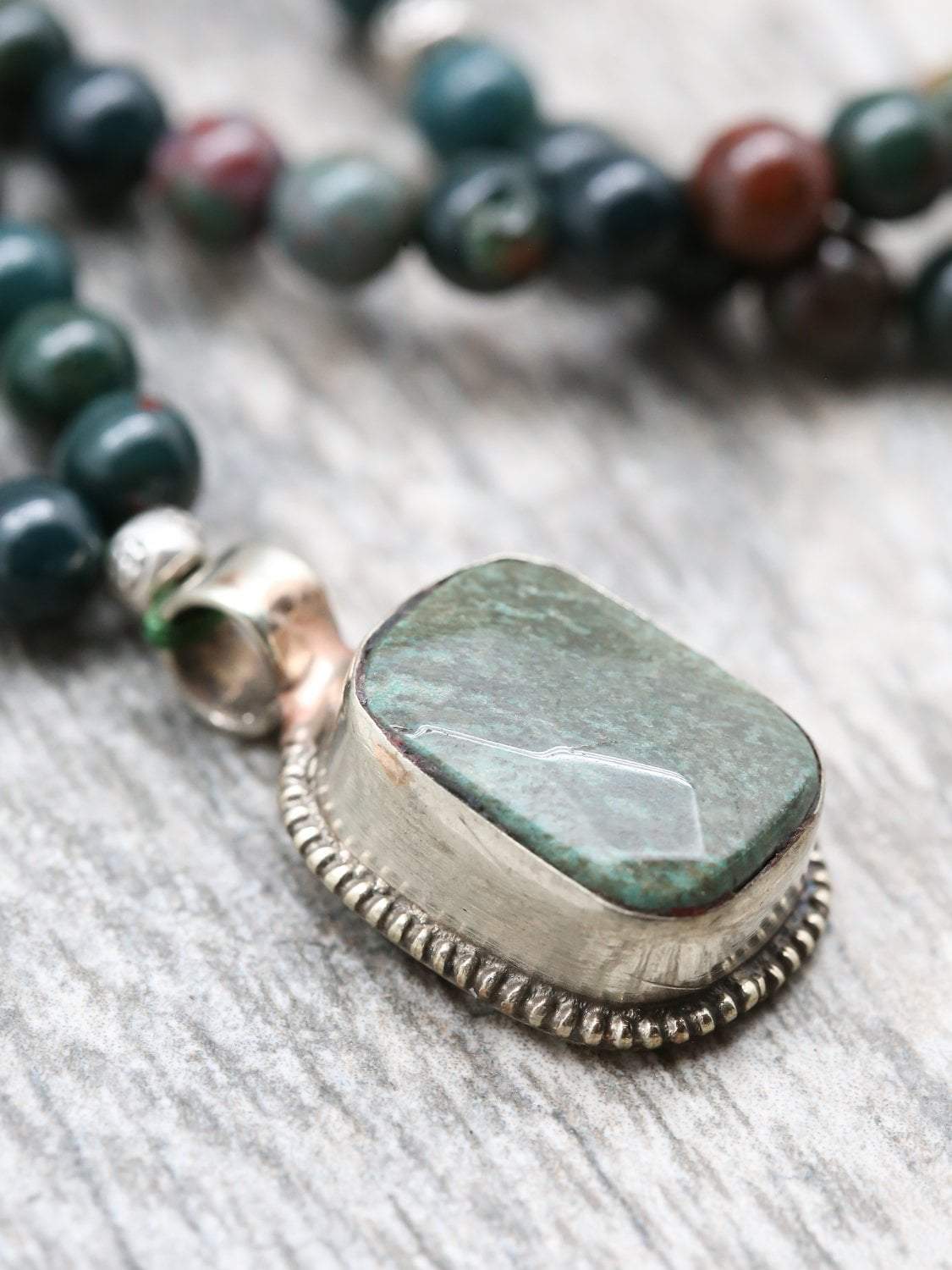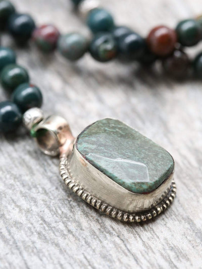 Bloodstone is considered to be the most beautiful of the Jaspers. Its energy carries the purity of blood and represents vitality and strength, passion and courage.