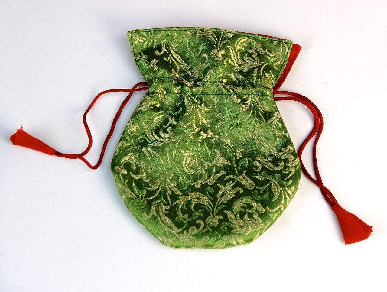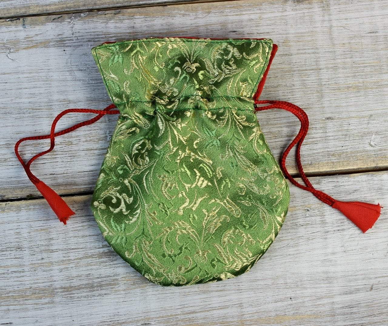 This bag is perfect for holding a small wrist mala, pendant, precious small keepsake, as a coin purse, etc. It also works as a reusable gift bag. Includes red drawstring closure. Other colors also available. 100% silk.