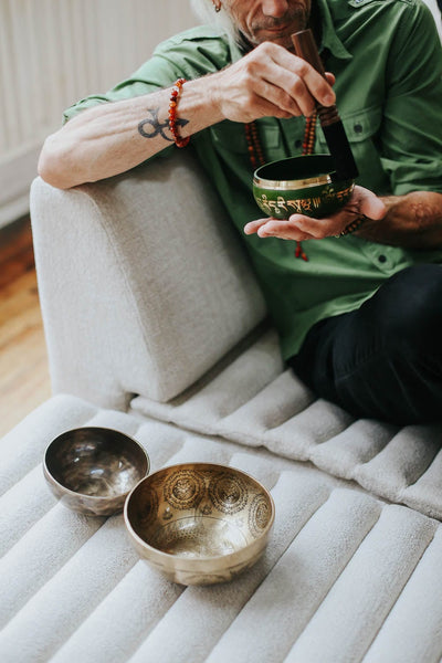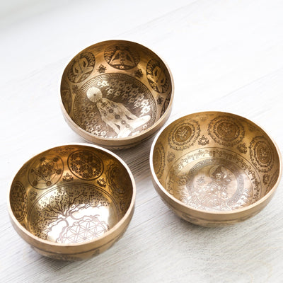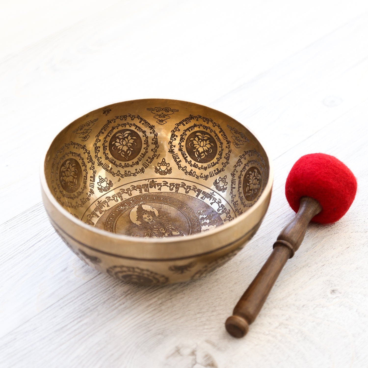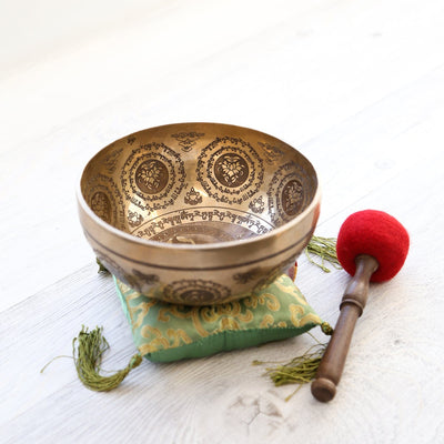 Available in our Tibetan Deity Singing Bowl Set and Green Tara, Sacred Geometry, & Yoga Chakra Singing Bowl Set!