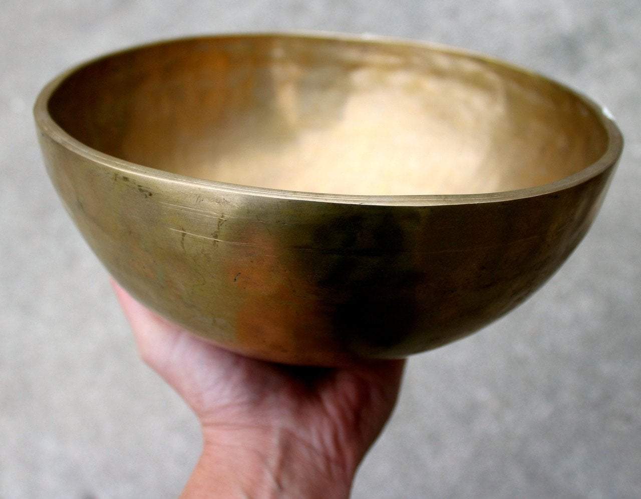 Makes a handsome and meaningful gift or an excellent tool for any meditation or yoga practice! These bowls are approximately 9 inches across. Each bowl is hand crafted of mixed alloy and individually chosen for their sound and beauty. Markings, coloration, and sound will vary.