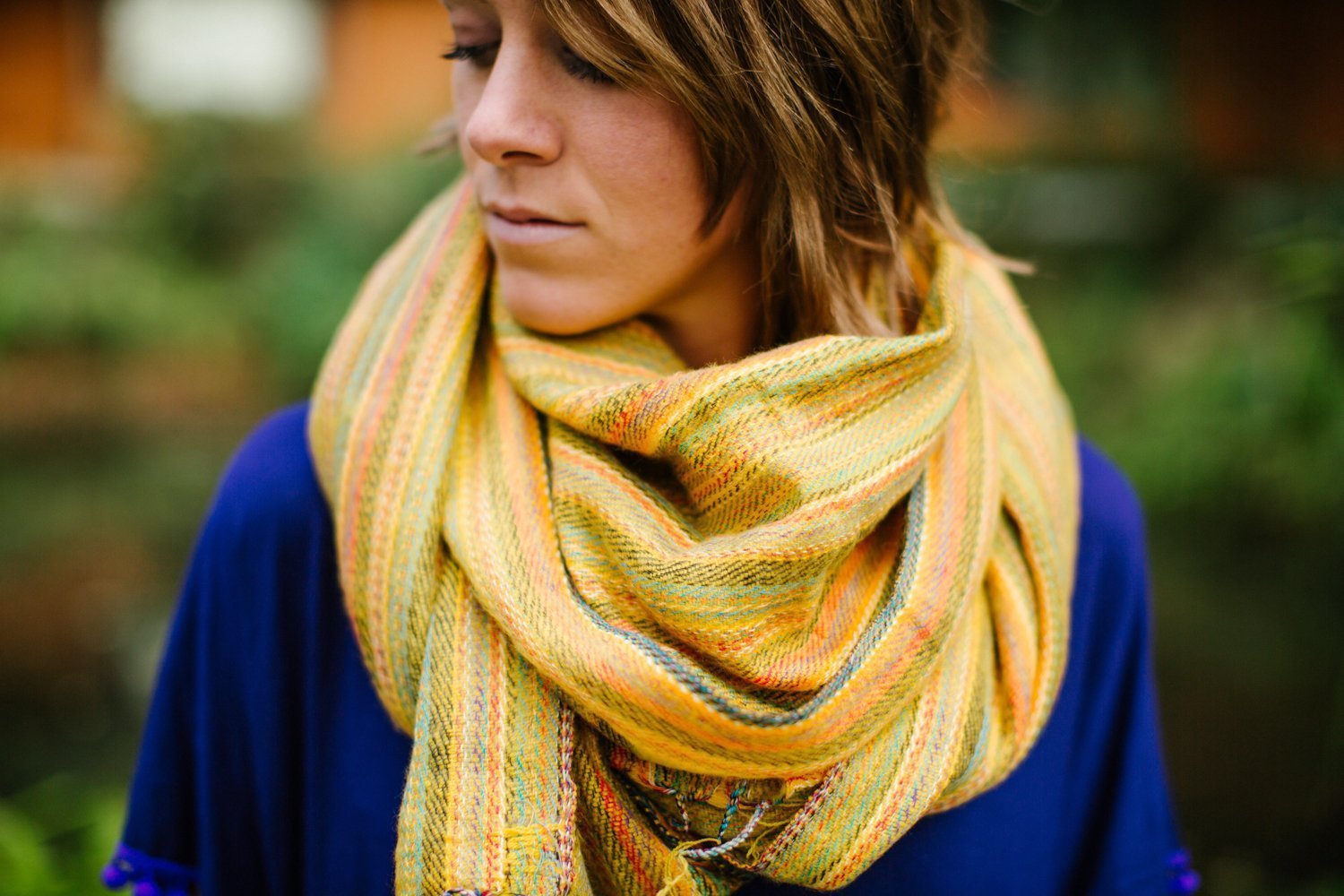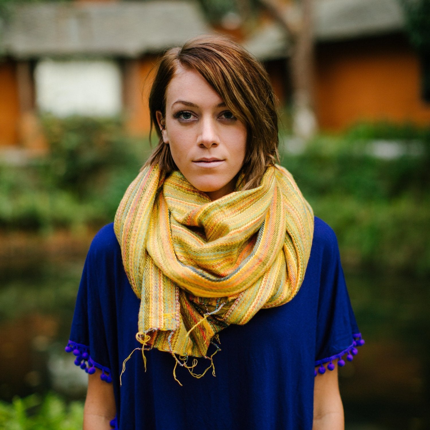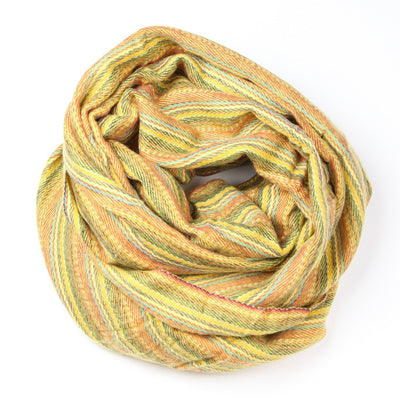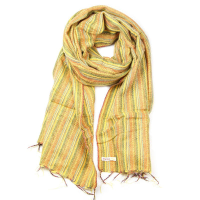 Beautiful yellow striped woolen scarf that is completely hand loomed by the Nepalese women weavers in Kathmandu. This pure Himalayan shawl is made with hand-spun sheep wool blended with acrylic - making it extremely soft, warm, and lightweight. You can wear it as a scarf, shawl, or wrap. It's an extremely fashionable design, and guaranteed to provide you with warmth and comfort. Perfect for the upcoming gift-giving season!