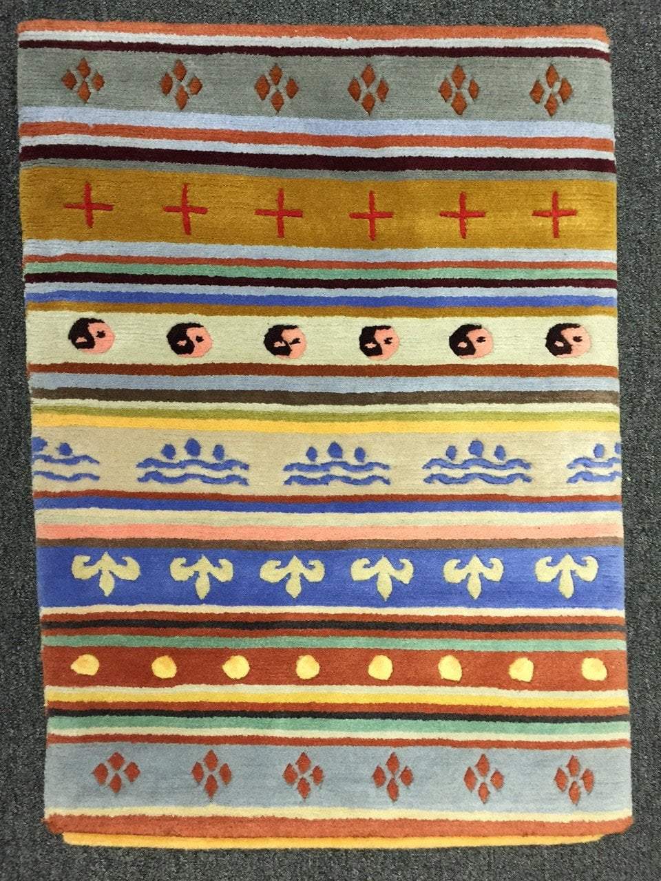These rugs are designed in the style of a Tibetan apron or Chuba. We love this traditional style and have many colors and sizes available. Handmade in Nepal 2 by 3 feet 60 knots per square inch