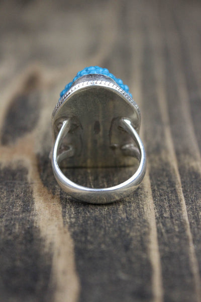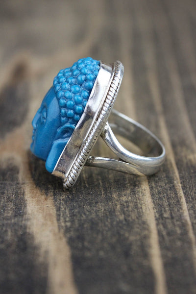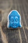 Hand carved turquoise Buddha set in sterling silver. Blue represents tranquility, ascension, the infitine, purity, and healing.