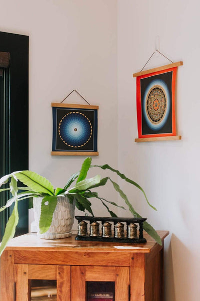 Each detail is painted by hand on cotton canvas using natural mineral and vegetable pigments. The intricate brushstrokes and extraordinary detail make these thangkas genuine works of art. It comes unframed and ready for Western style framing of your choosing.