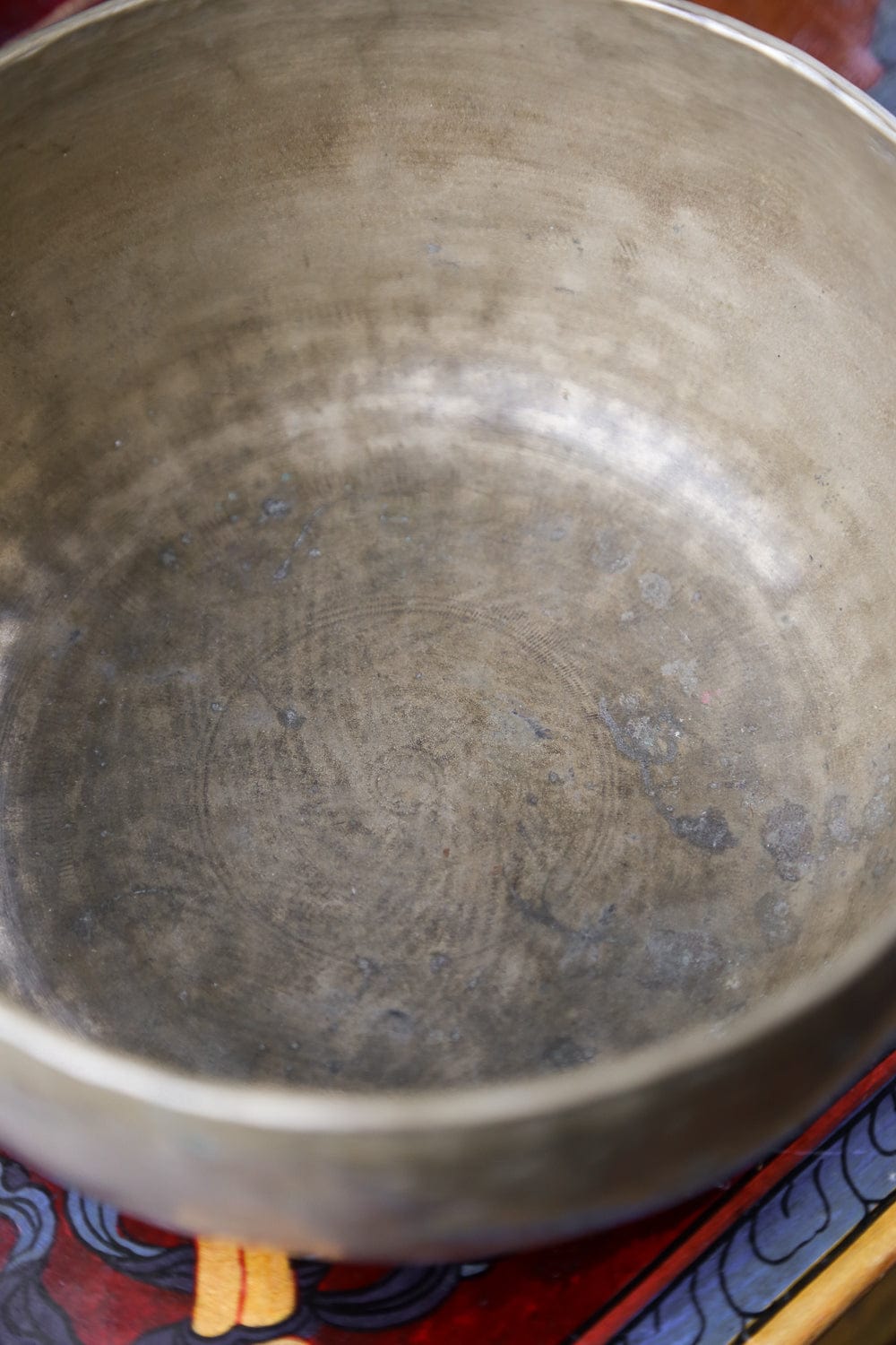 Each time we're able to get a small collection of these bowls is exciting as they are exceptional. Antique Tibetan singing bowls like this one are highly sought after for their remarkable quality sound, rich tones, and unique physical characteristics. Every handmade mark tells a story of the bowls history!