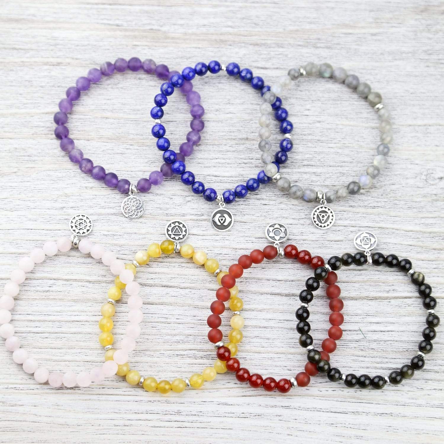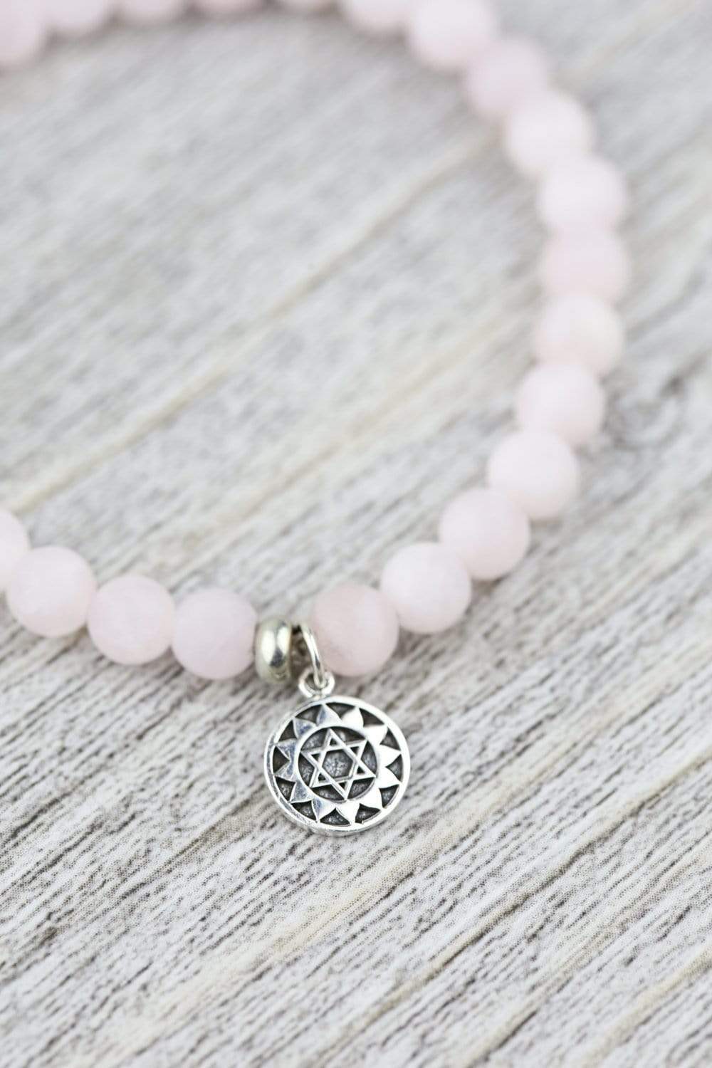 • Open up your Heart Chakra with our Rose Quartz charm bracelet! Handmade exclusively by DharmaShop.
