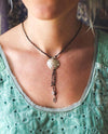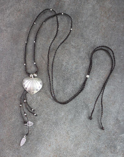 Initially part of our spring collection, this best seller doesn't seem to want to fit into any confines. Necklace features handmade, 98% pure Hill Tribe silver elements that are hand knotted onto a cotton necklace (no leather). It looks beautiful layered with other necklaces, or worn it as a delicate and chic statement piece.