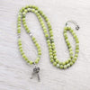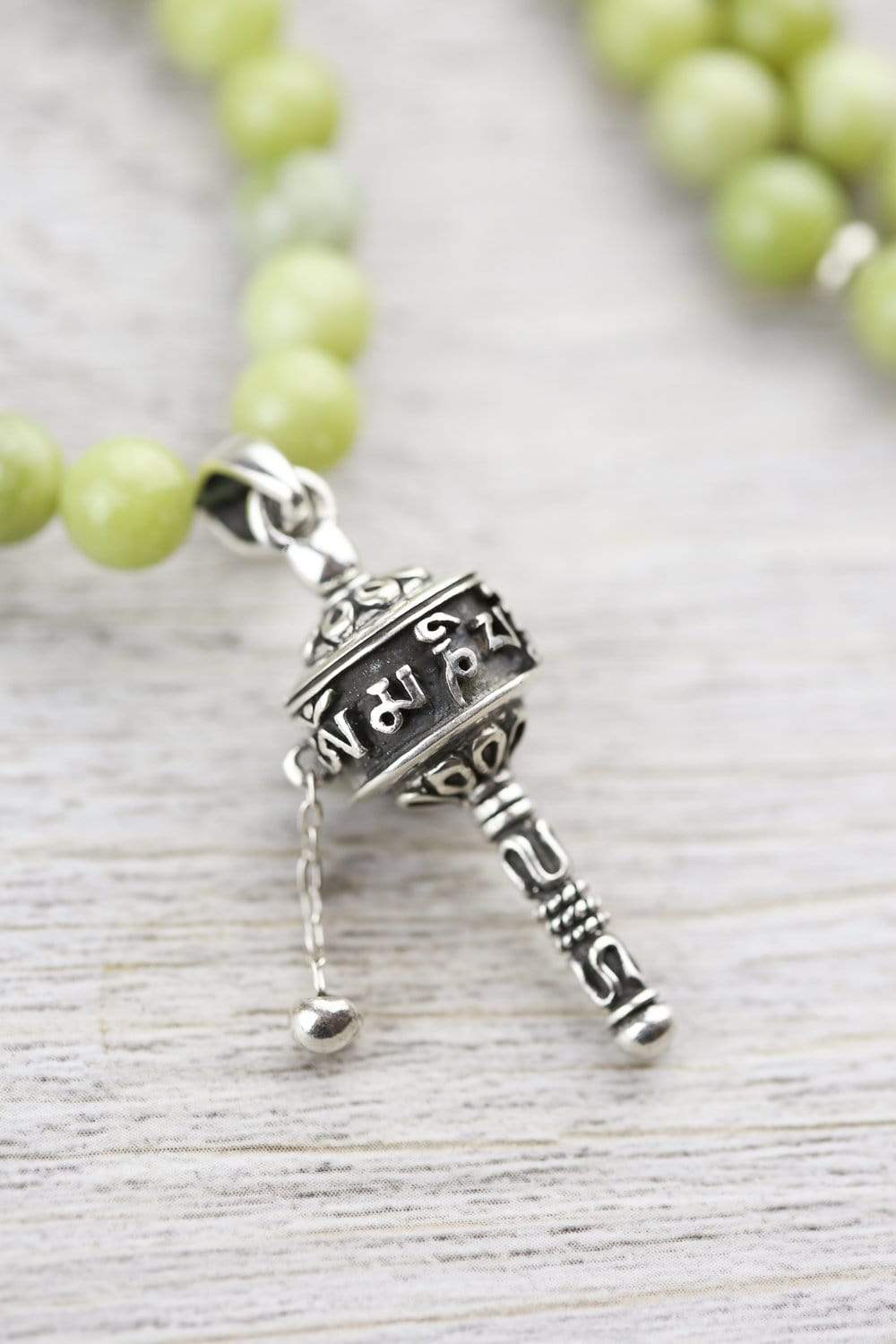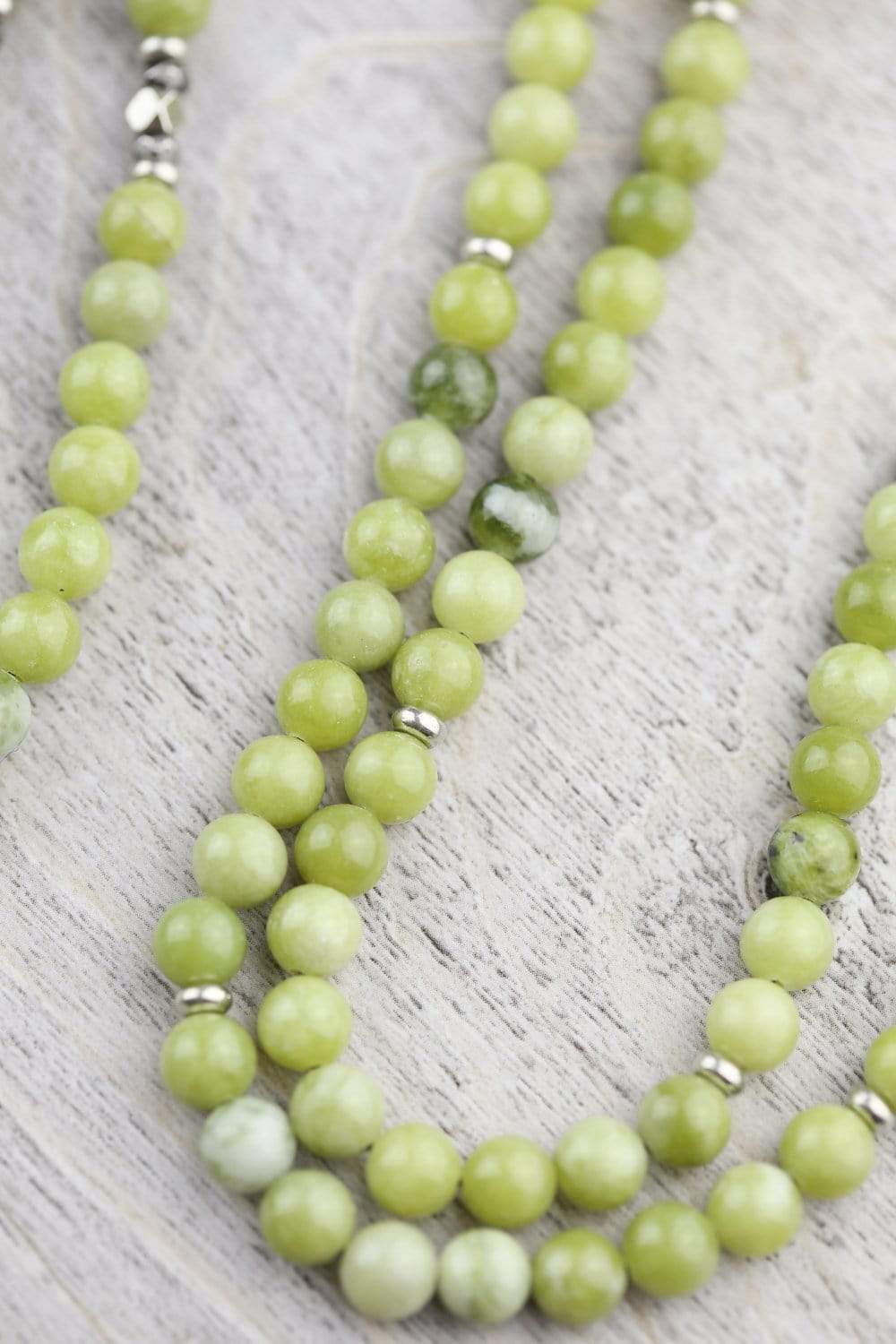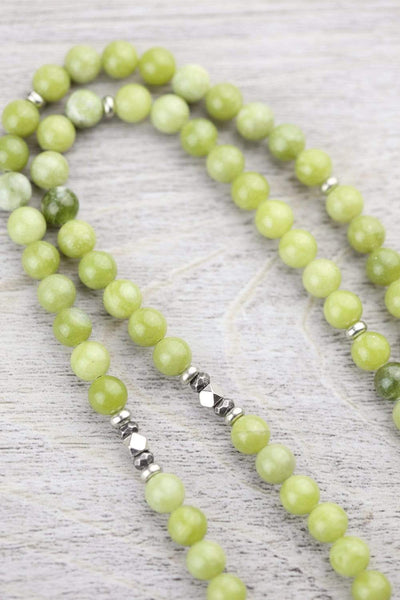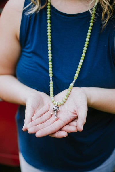 This mala carries a beautiful green energy that activates and stimulates the Heart Chakra. Jade is cherished as a protective stone and is considered very powerful for healing. It is known to be a symbol of purity, wisdom, and tranquility. Green jade is great for healing, lessening stress and inspiring calm.