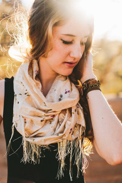 Simply in Love! Our favorite new scarves, beautifully detailed with hand embroidered flowers. A perfect spring scarf.