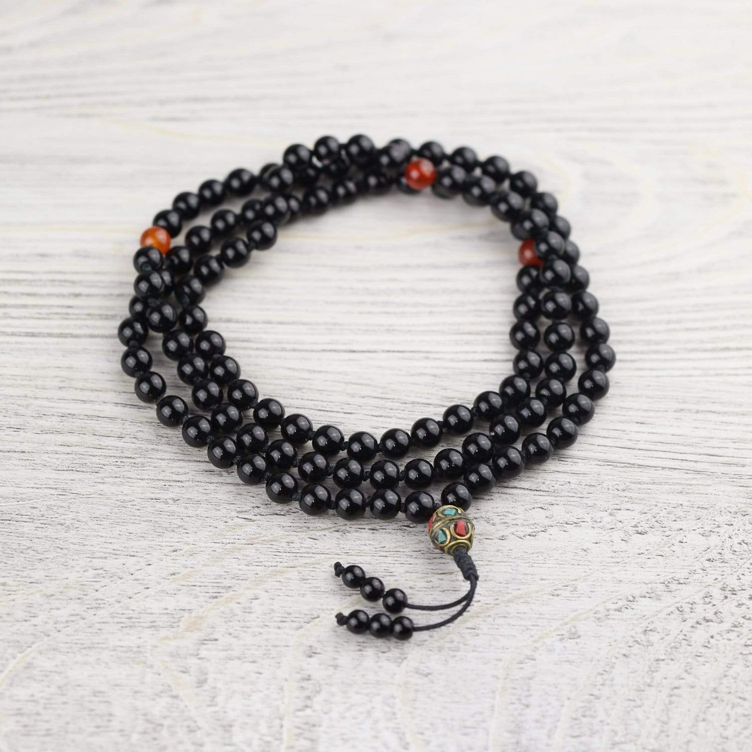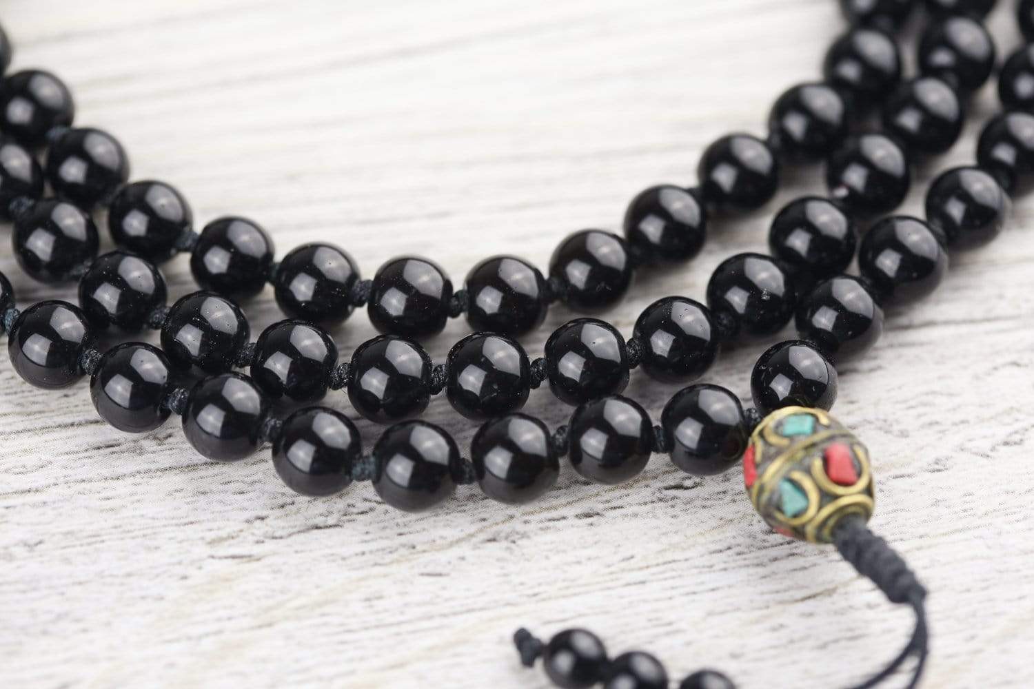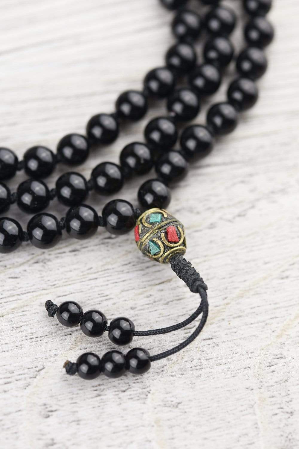 Mala measures approximately 39 inches around. Beads are 8mm. Tibetan guru bead is about 12-13mm.