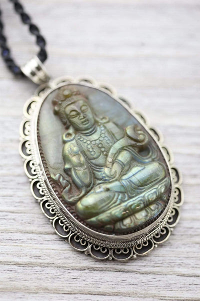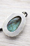 Labradorite is a stone of the Throat Chakra, believed to open the wearer up to their natural intuition and creativity. Its beauty and layered color comes from the thousands of years of mineral plates sliding together, piling on top of each other to create the many lines and veins of colors deep into the stone.