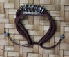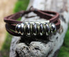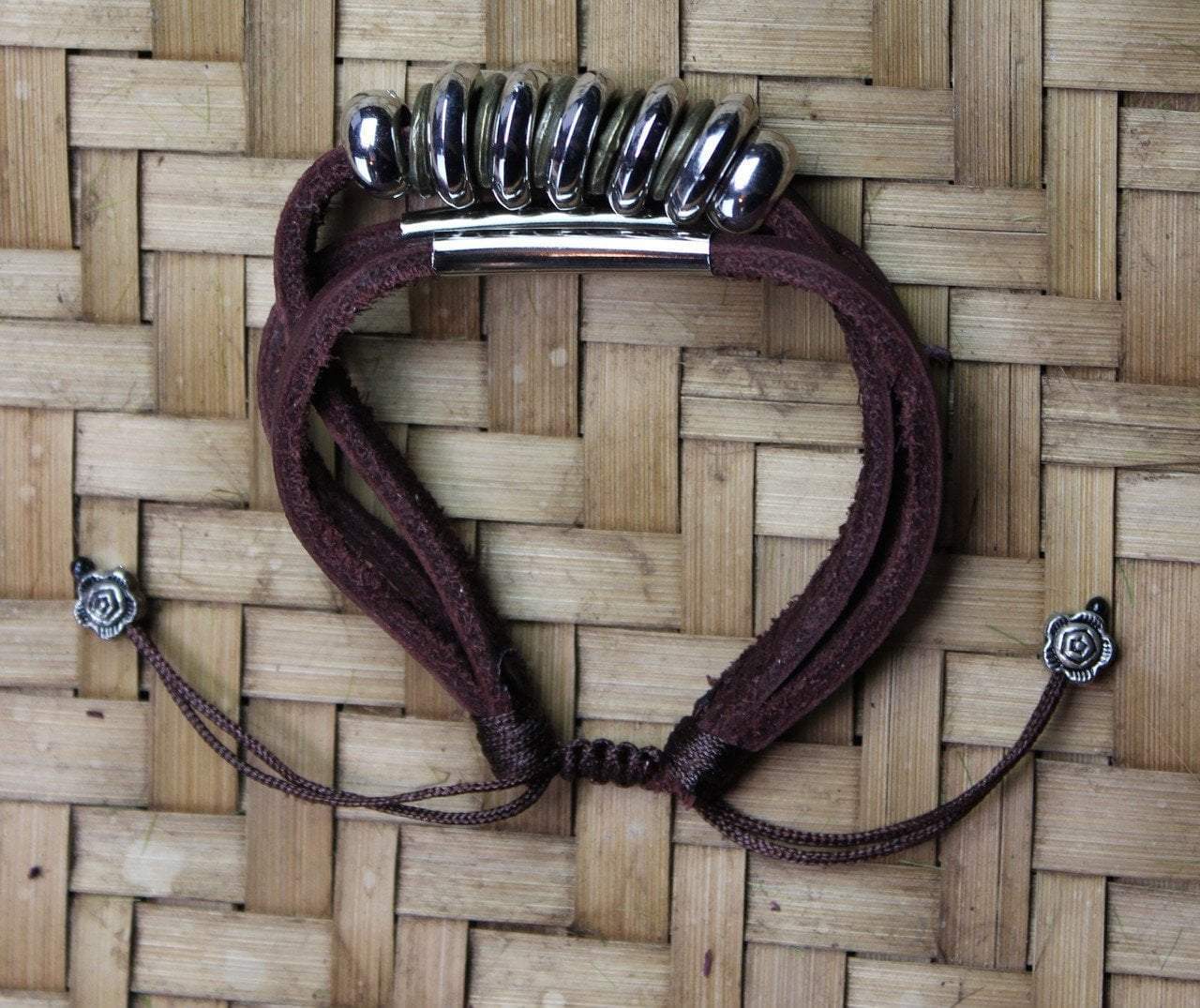 Handmade leather bracelet from India with white metal beads