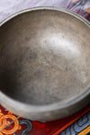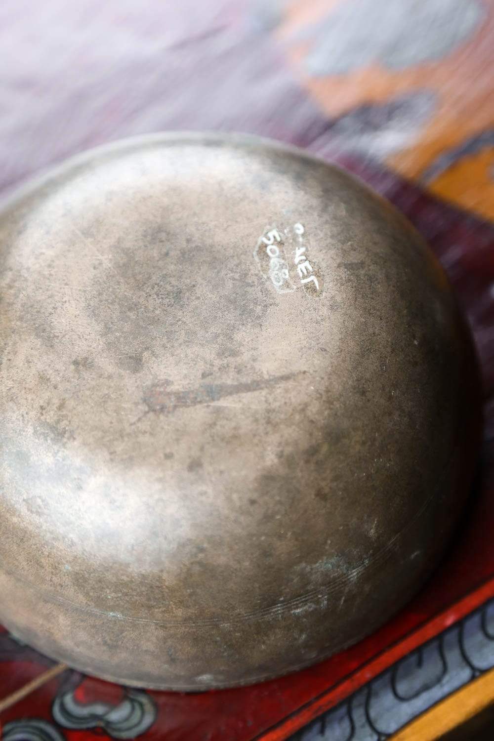 Each singing bowl from the Lost Collection features a unique identification number that links it to the rare antique collection.  In this case, it can be seen along the inside rim of the bowl.