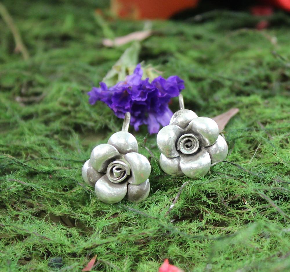 Beautifully articulated flower blossom, each with their own details, are artfully cast in solid Hill Tribe silver (.98).