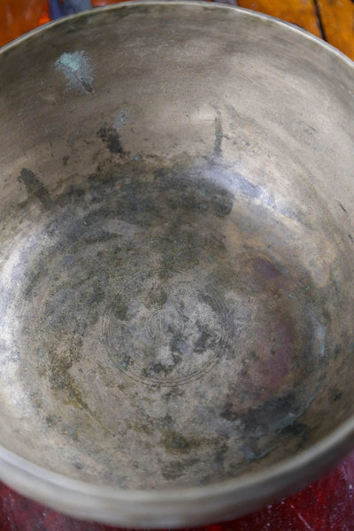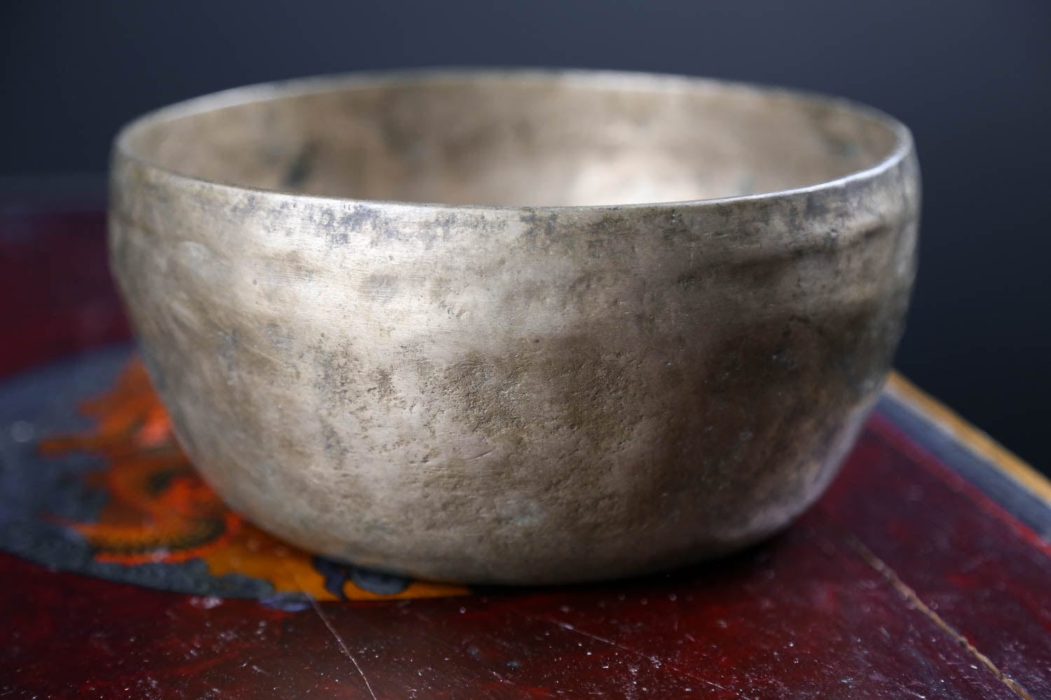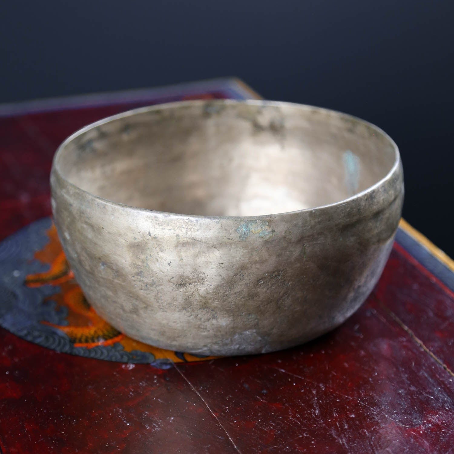 Each time we're able to get a small collection of these bowls is exciting as they are exceptional. Antique Tibetan singing bowls like this one are highly sought after for their remarkable quality sound, rich tones, and unique physical characteristics. Every handmade mark tells a story of the bowls history!